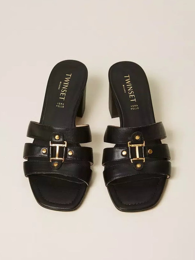 Twinset Sandali Mules in pelle con logo Nero