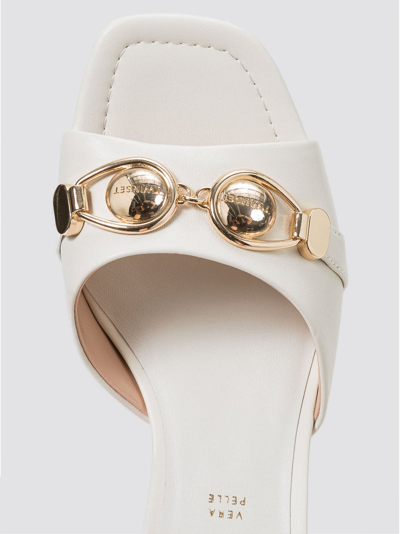 Twinset Ciabatte Mules in pelle laminata Bianco Giglio