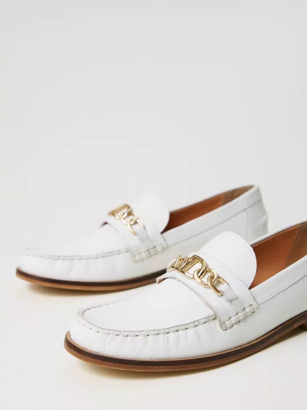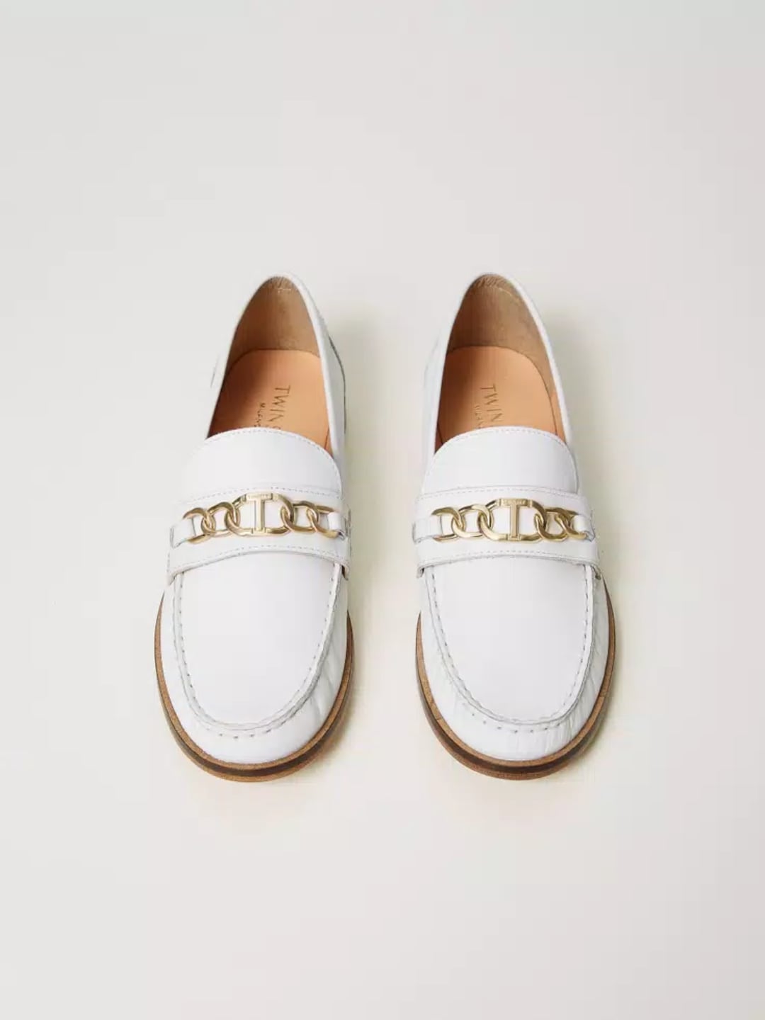 Mocassini in pelle con morsetto Oval T Col. Bianco