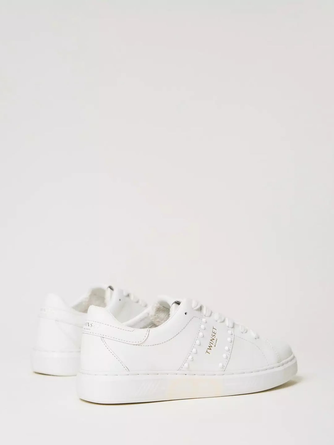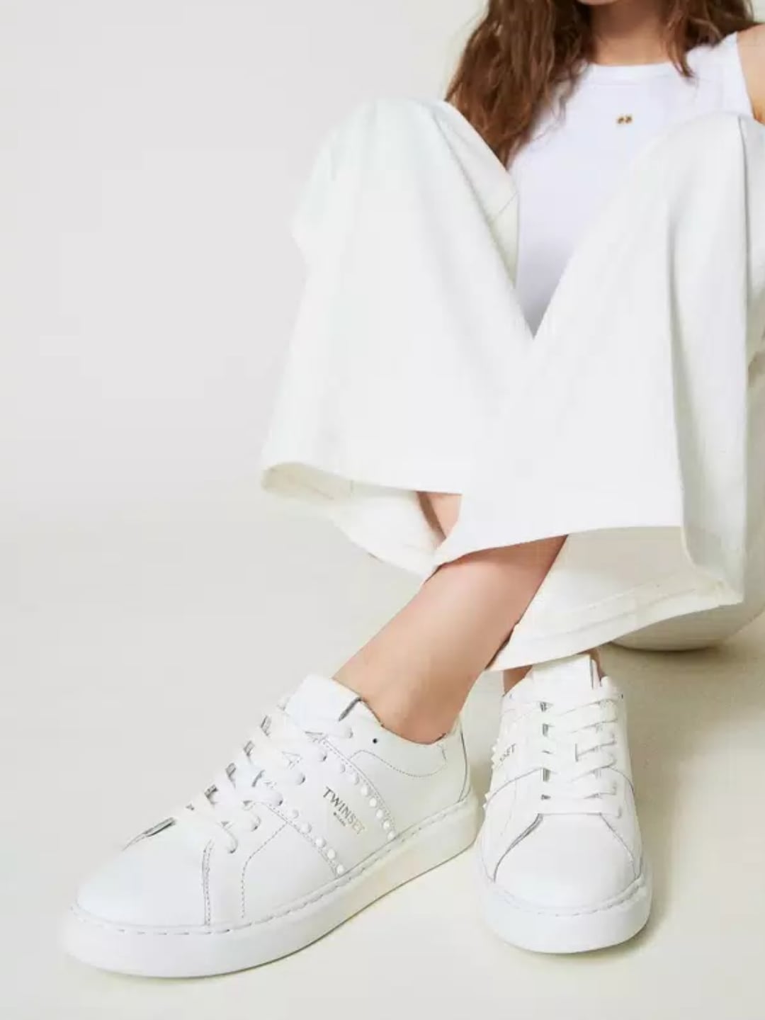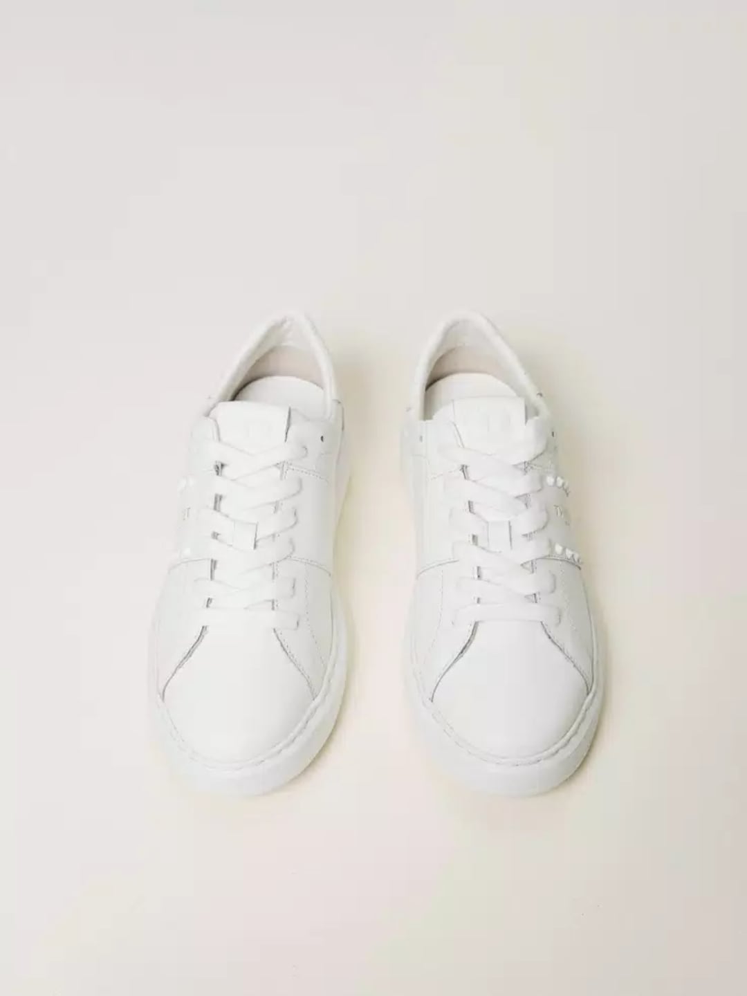 Sneakers in pelle con borchie Col. Bianco Ottico