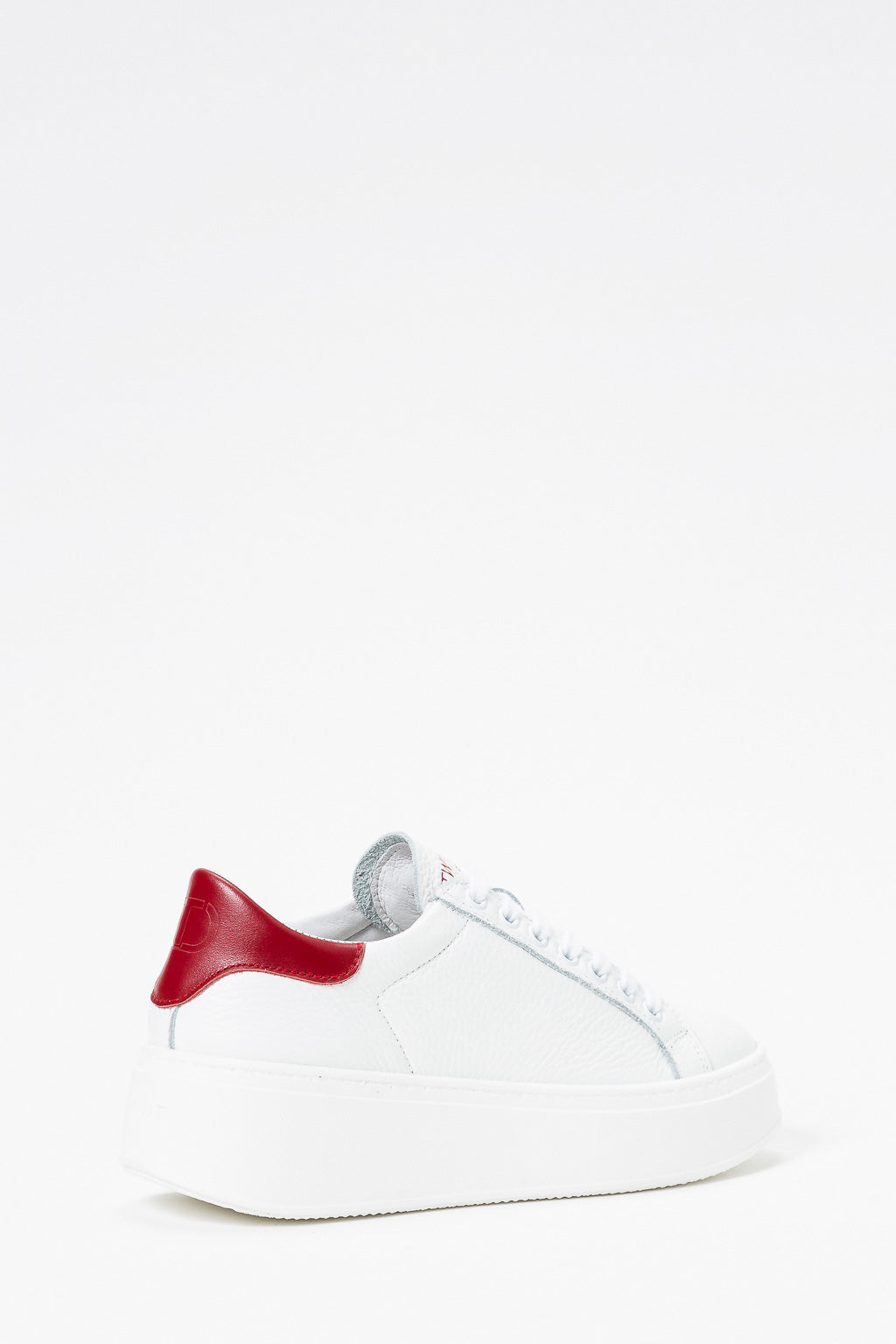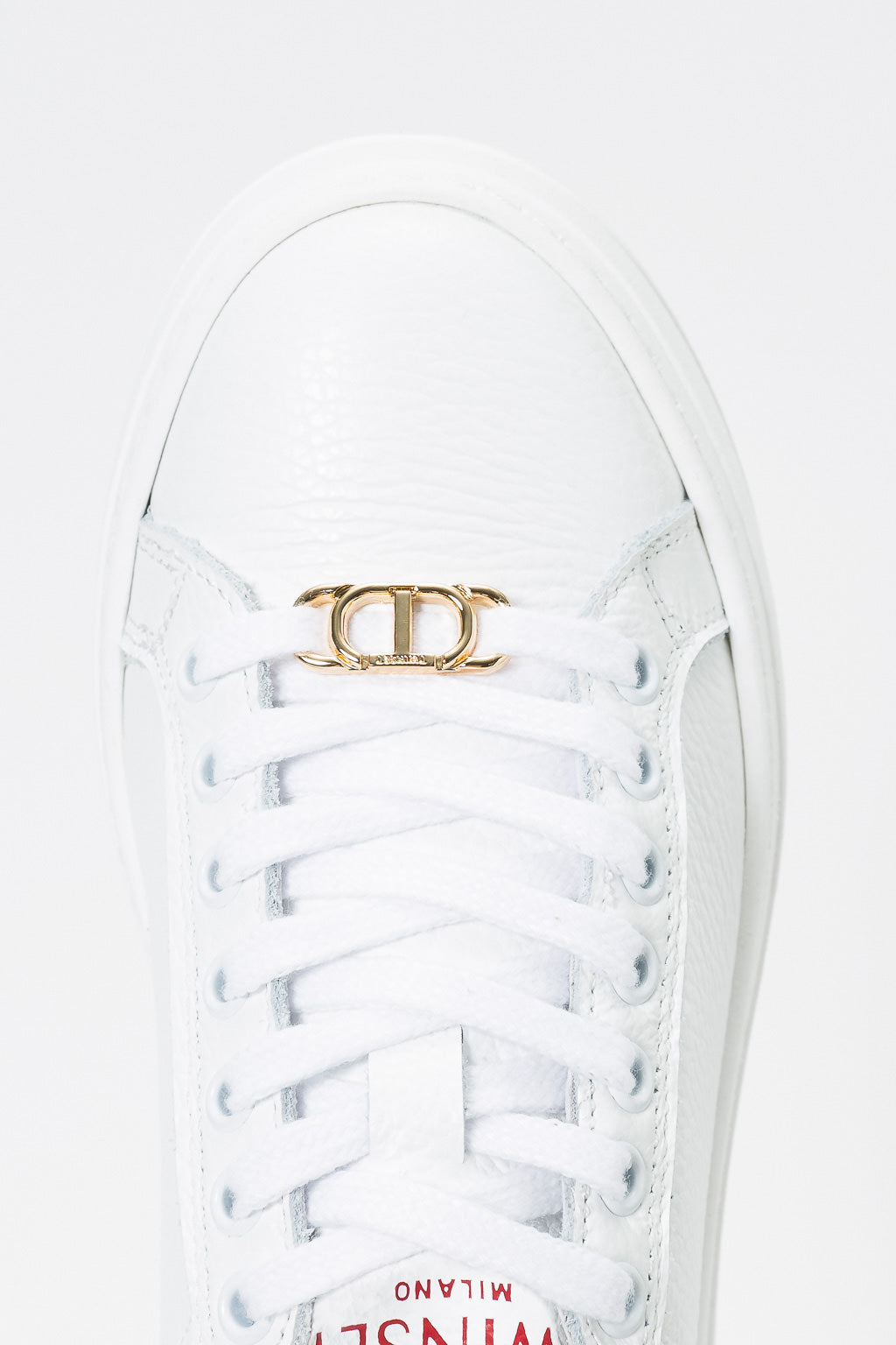 Twinset Sneakers in Pelle a Grana Bianco Ottico Bordeaux