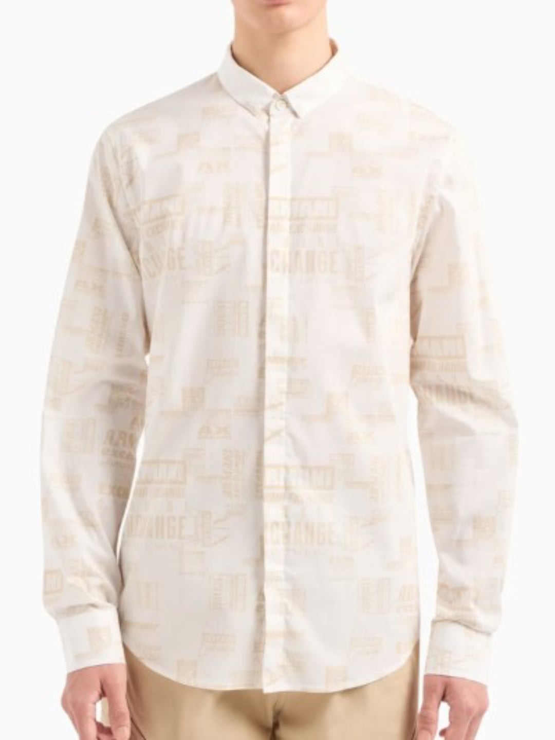 Armani Exchange Camicia in popeline di cotone fantasia Bianco