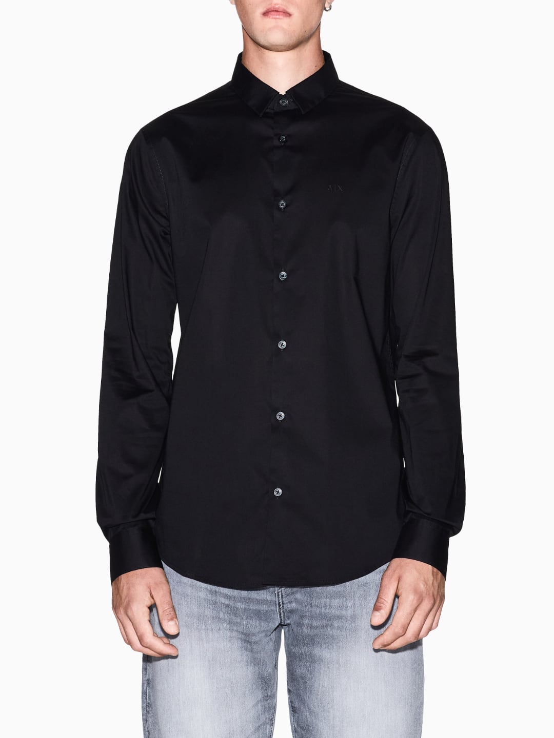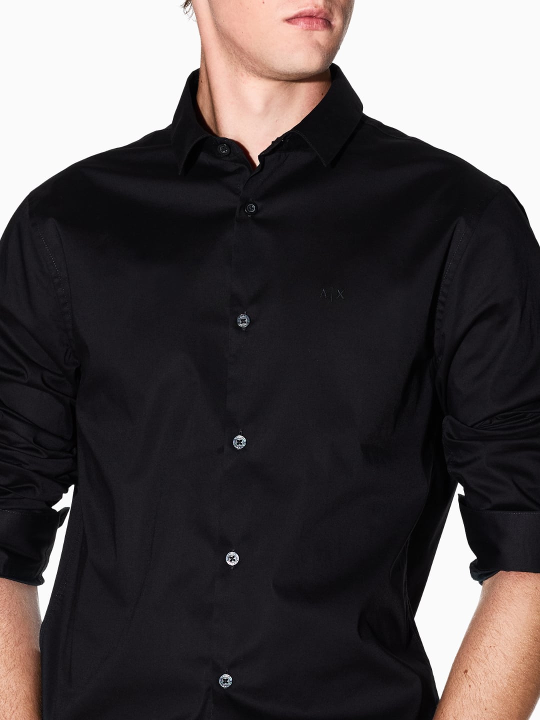 Camicia slim fit realizzata in popeline stretch. Questa camicia è definita dal design essenziale che presenta collo classico, piccolo logo ricamato sul petto, bottoni sul davanti e polsini con bottone.