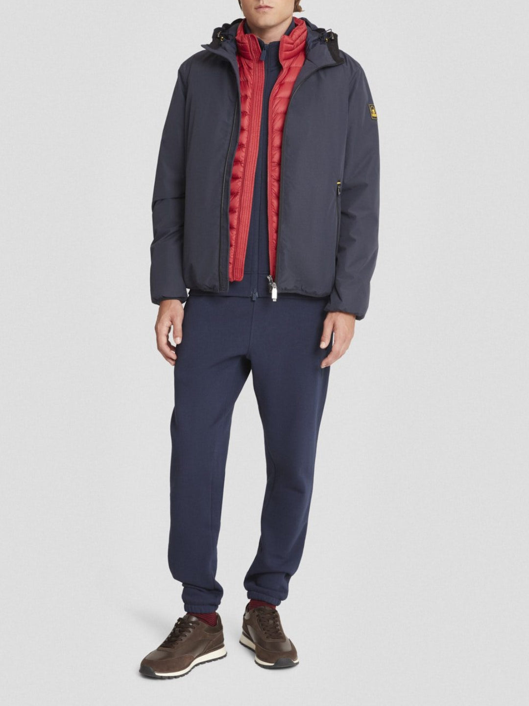 L’imbottitura in ovatta 80gr offre comfort e calore, mentre il tessuto poly taslan, leggero e resistente, è trattato DWR per proteggere dagli agenti atmosferici.