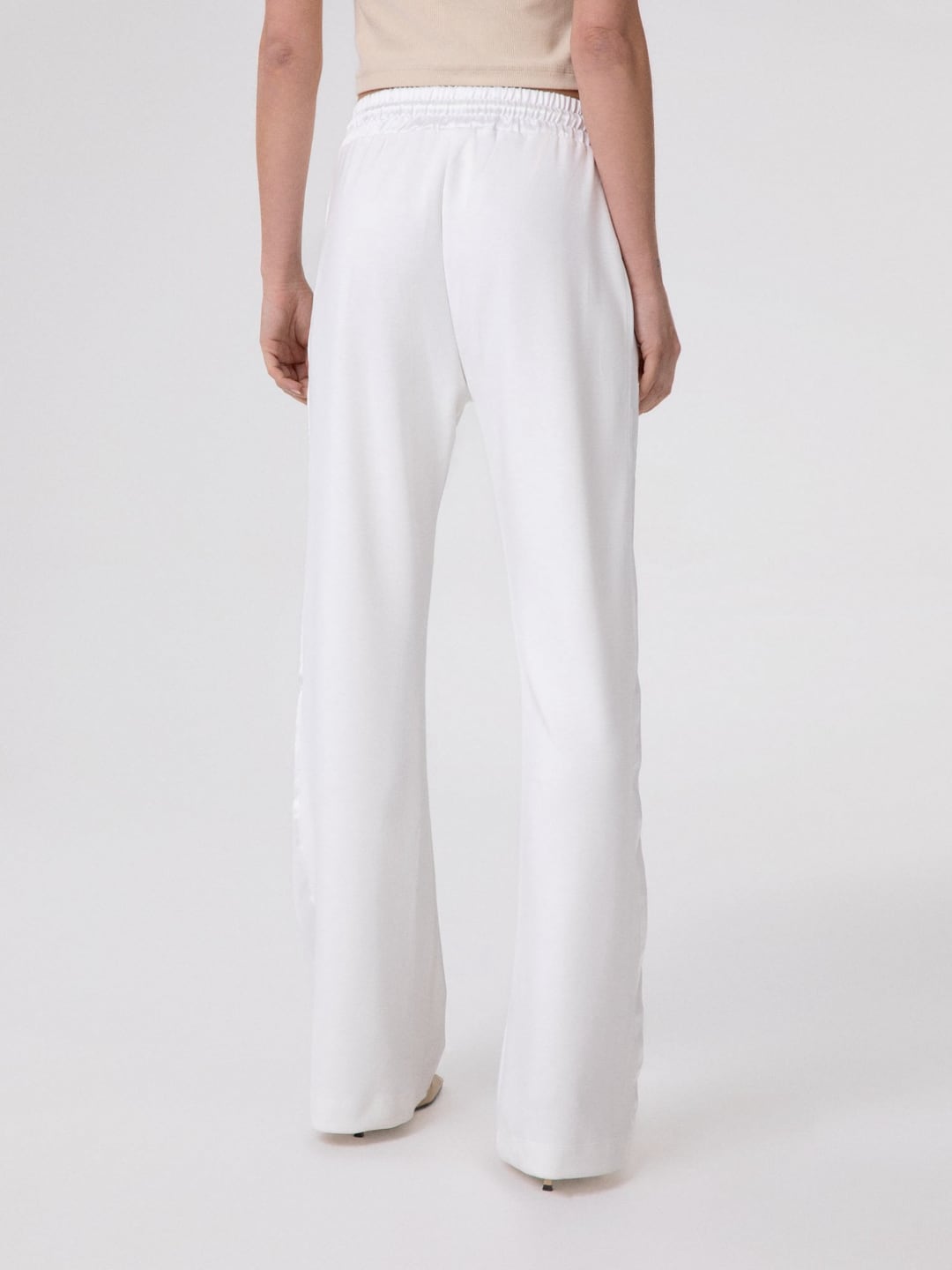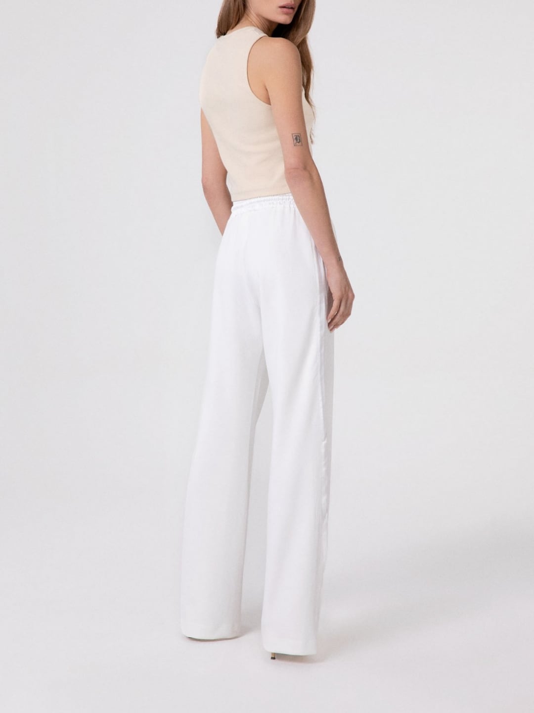 Hinnominate Pantalone Dritto Vita Alta In Viscosa Con Inserti In Raso Bianco