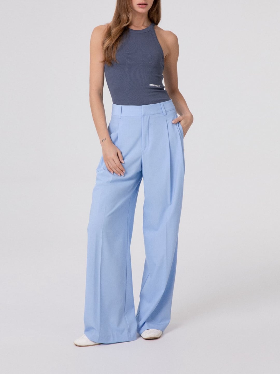 Hinnominate Pantalone Over Con Pences Azzurro Pastello