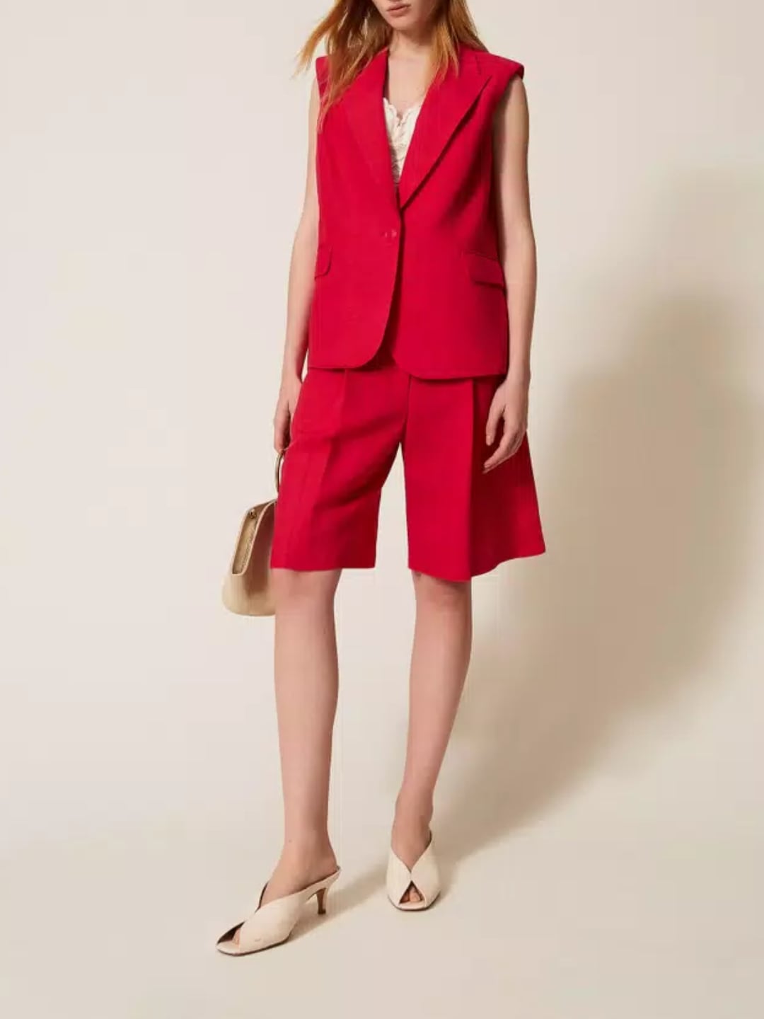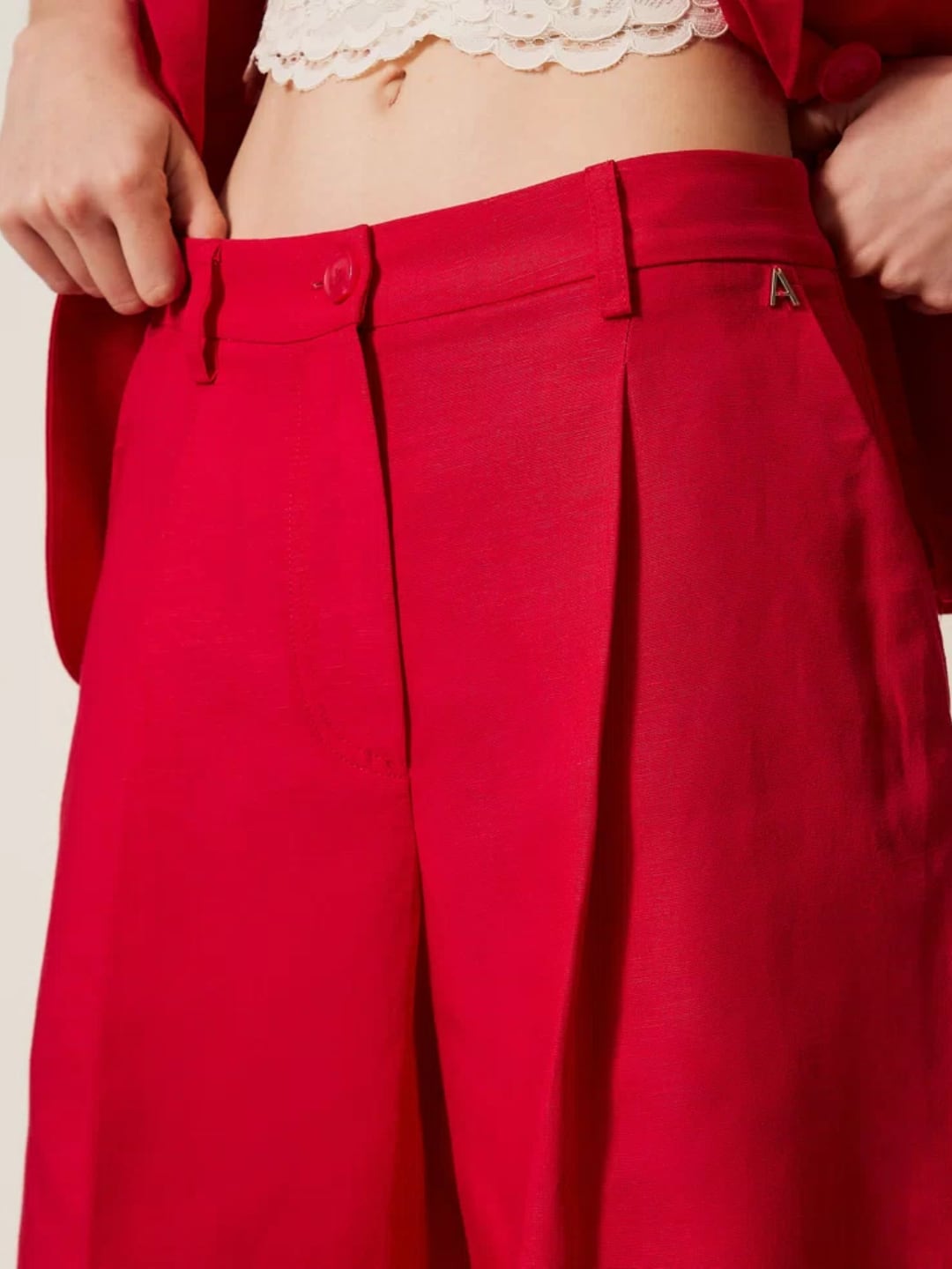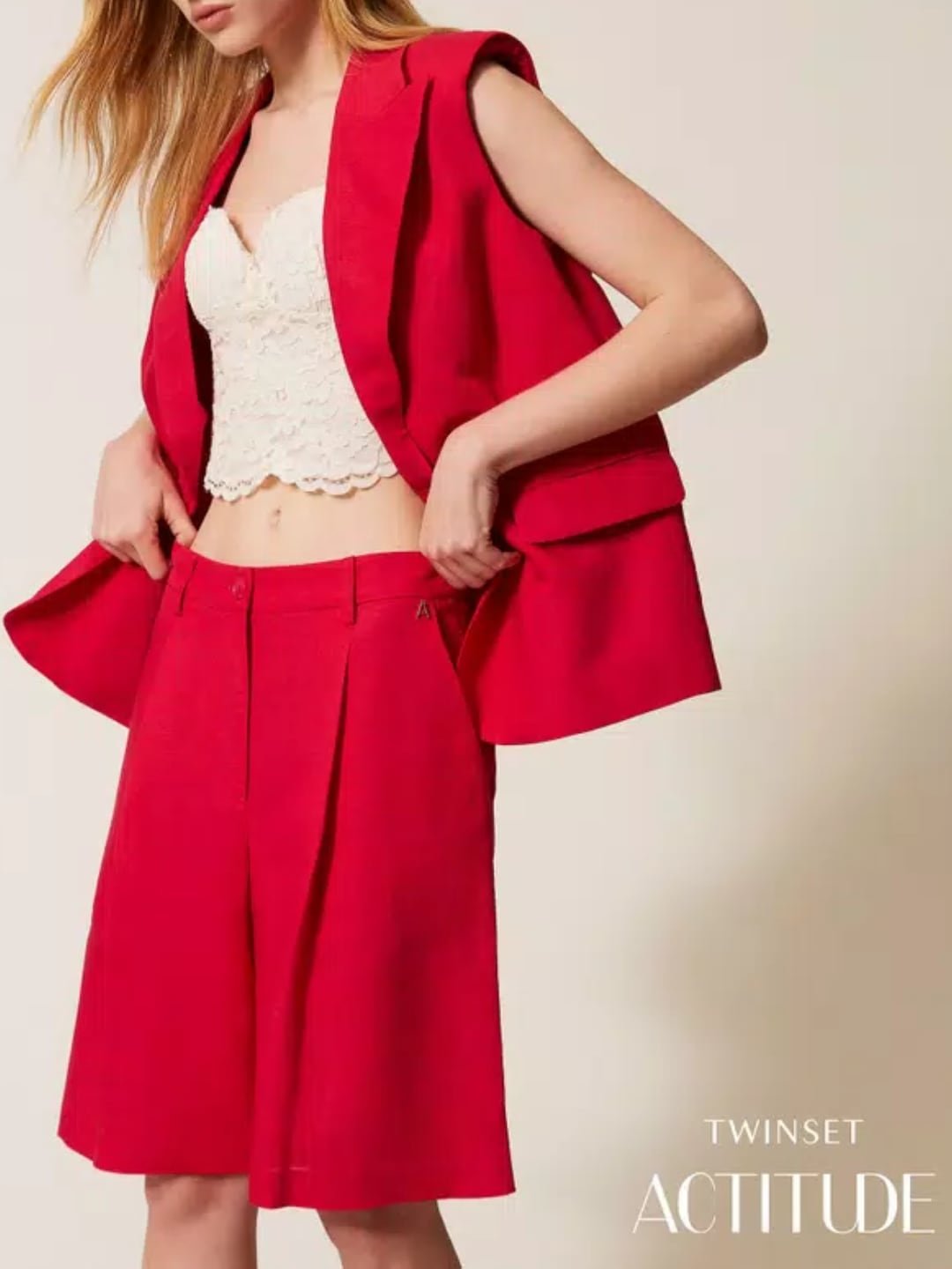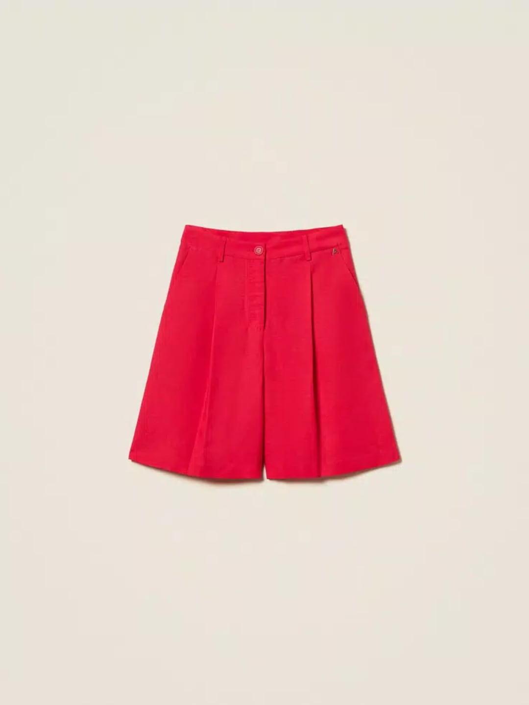 Twinset Bermuda in misto lino Rosso "Magenta"