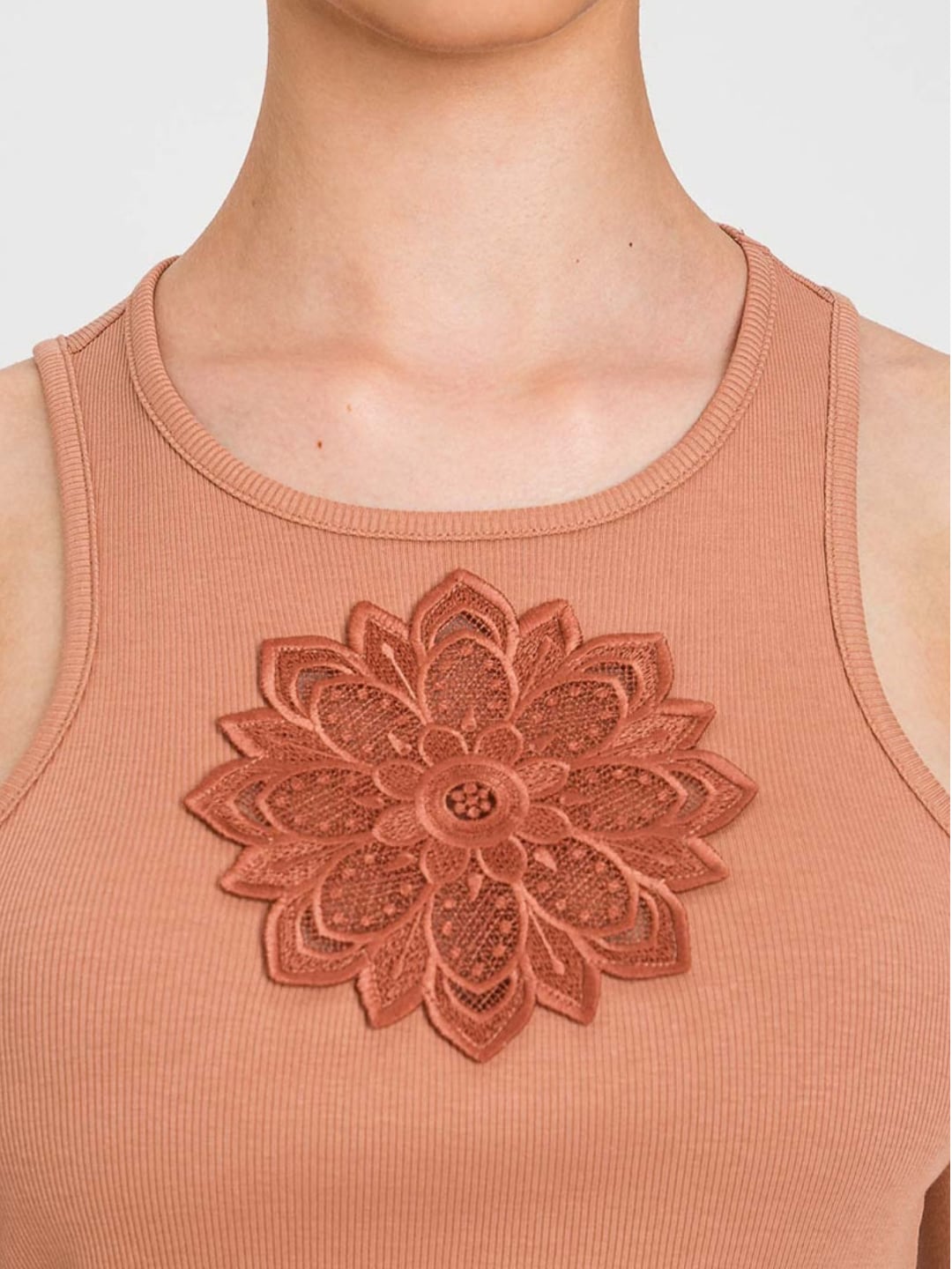 Twinset Canotta con ricamo floreale Marrone Mocha Mousse