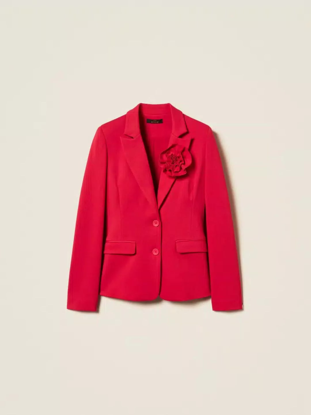 Twinset Giacca blazer con spilla a fiore Rosso "Magenta"