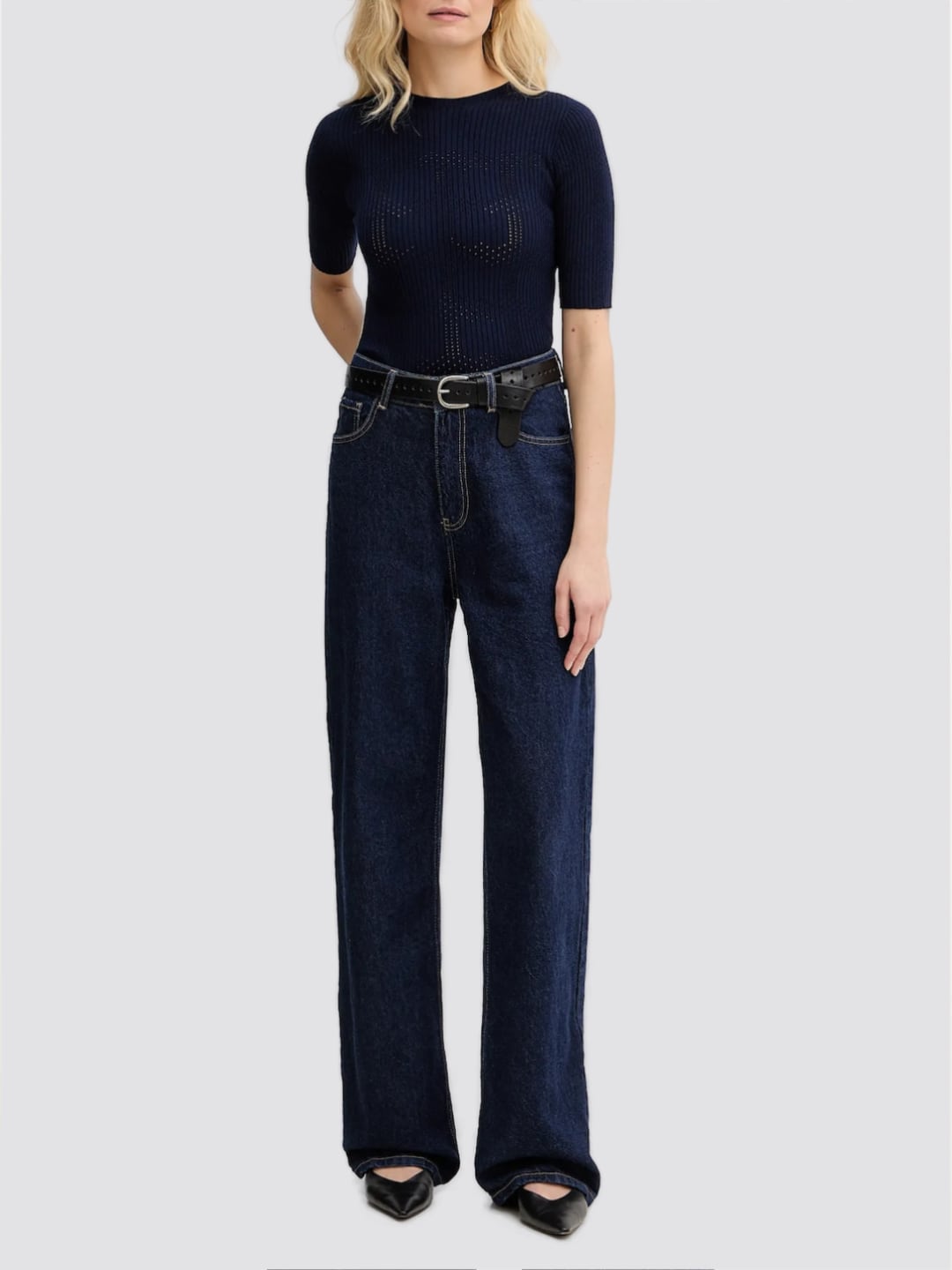 Twinset Maglia a girocollo a coste e punzonati Blu Night
