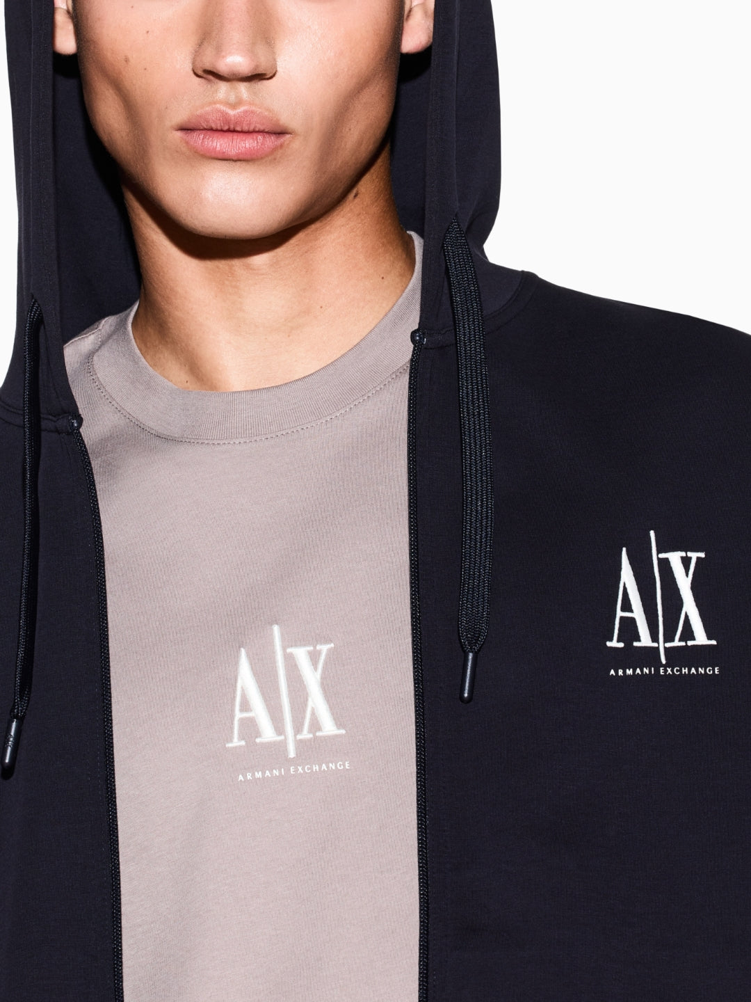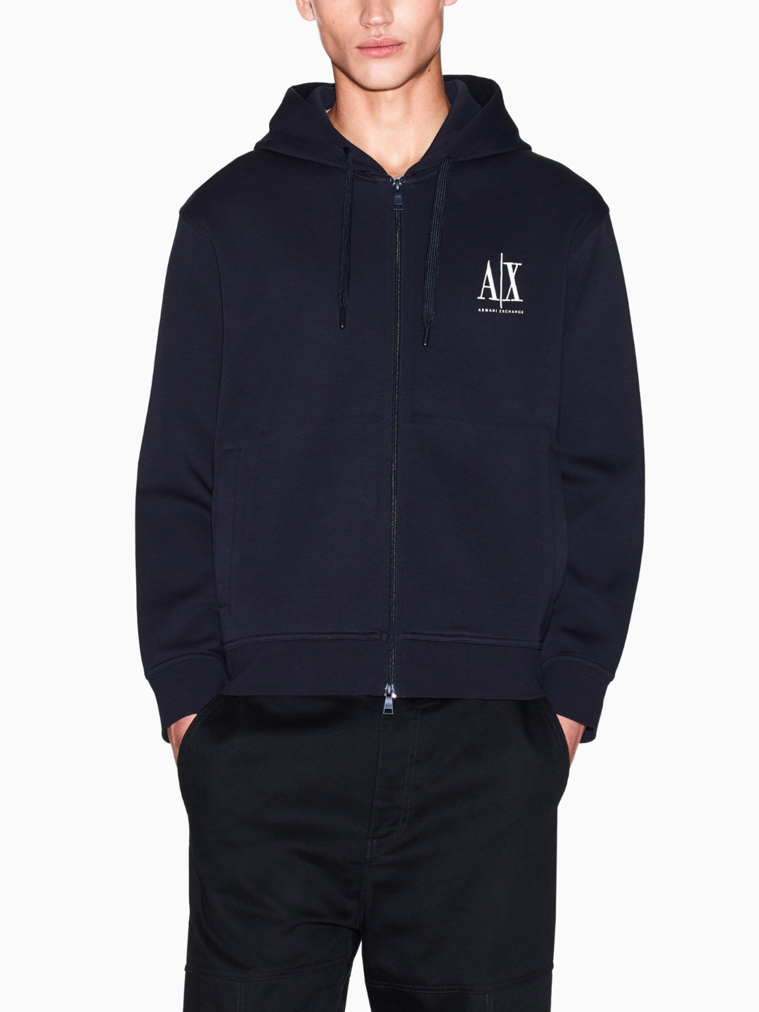 Armani Exchange Felpa fullzip con cappuccio logo ricamato Blu Navy