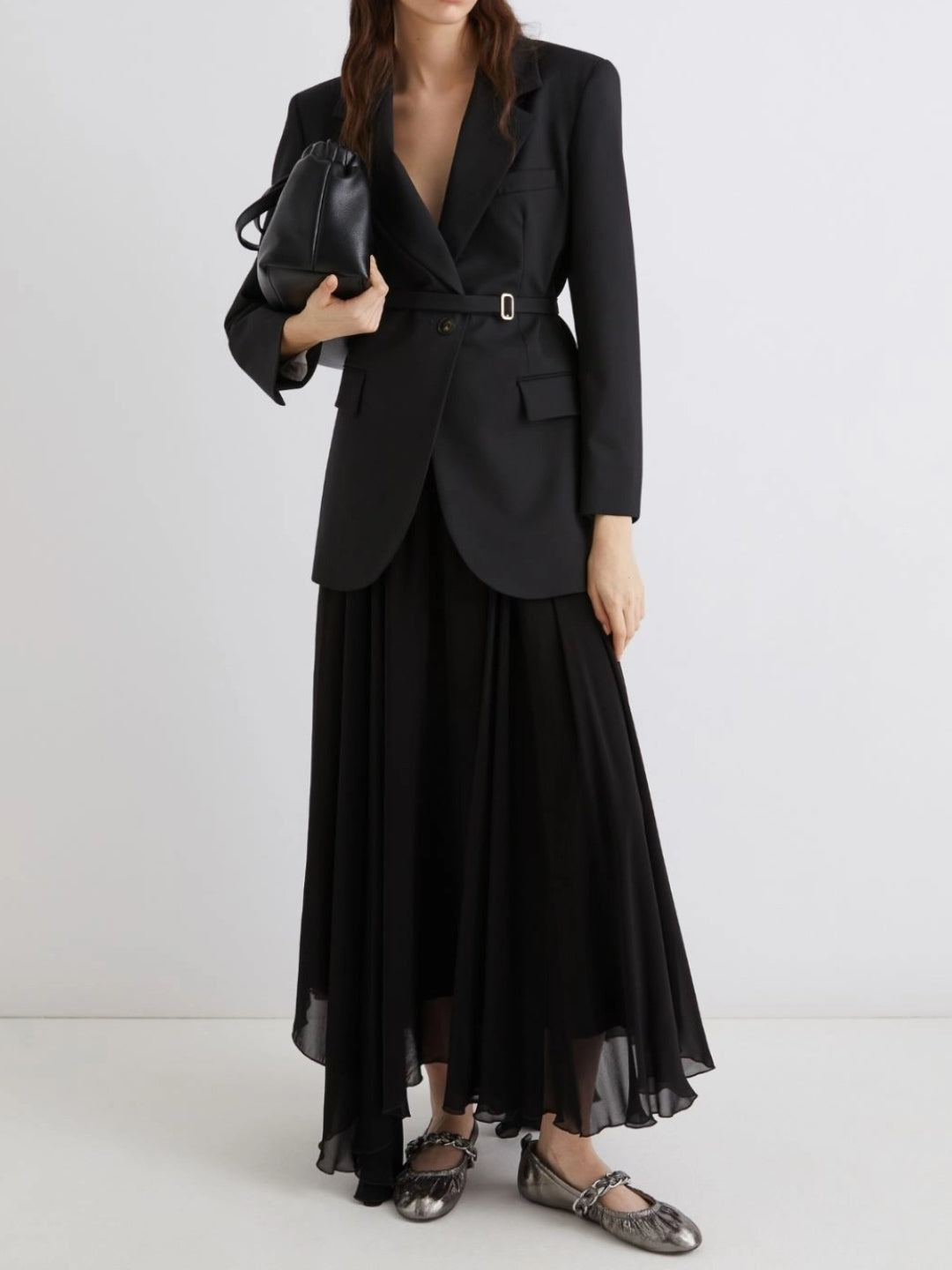 Formale ma chic, il blazer è il nuovo protagonista del nostro guardaroba, con le sue linee decise sulle spalle e il tocco femminile della cintura in vita. Impeccabile con i pantaloni, sorprendente con le gonne in voile di collezione.