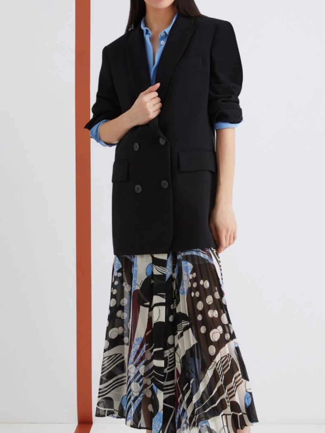 Formale quanto serve, versatile per tutti i giorni: nuova giacca dal taglio dritto, leggermente lunga ai fianchi per accompagnare con il suo volume gonne, abiti e mini di collezione.