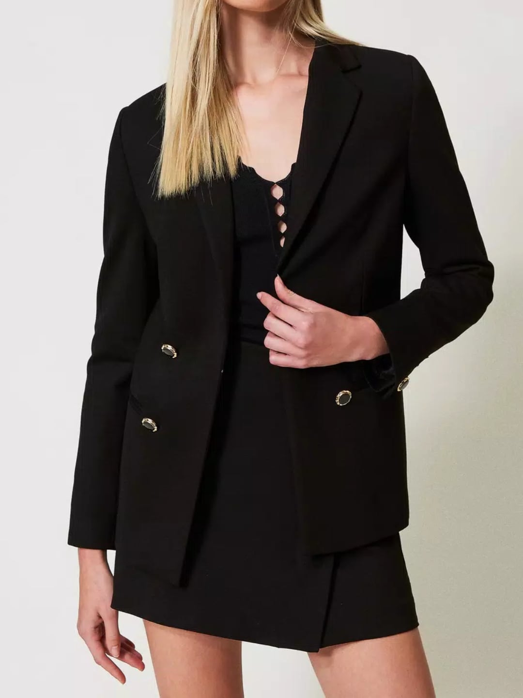 Twinset Giacca doppiopetto con bottoni gioiello Nero