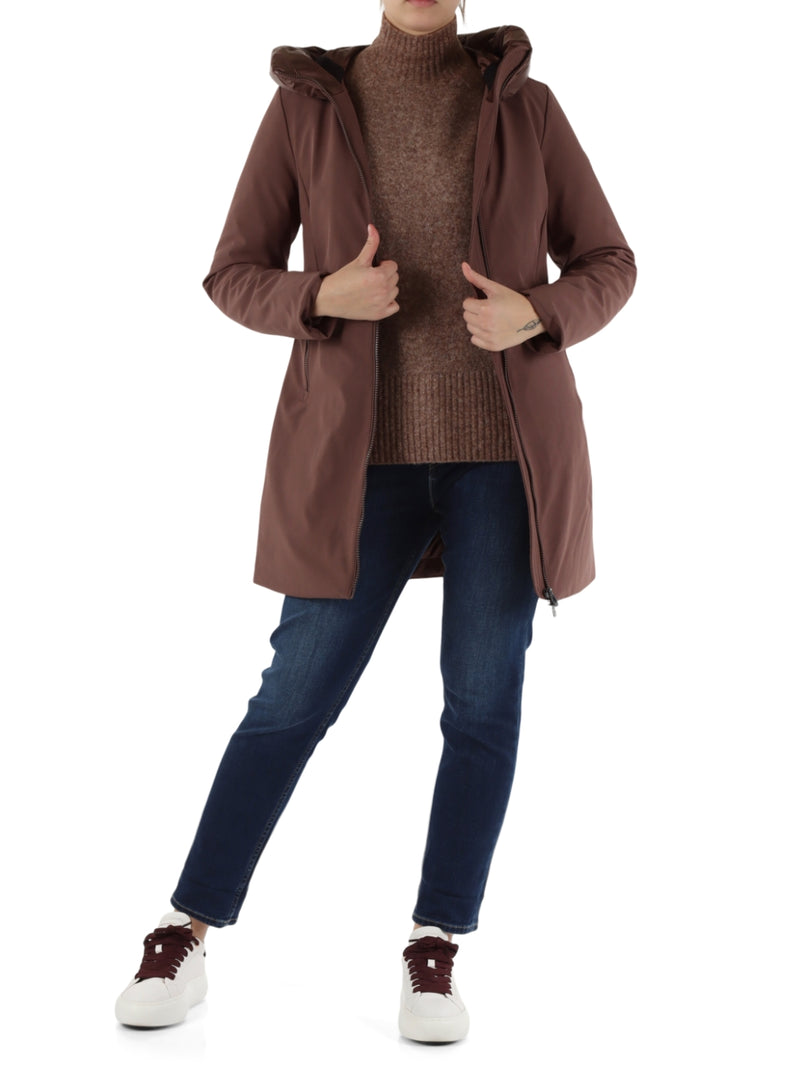 Giubbino Lungo con Cappuccio in Softshell Nero Mire 3.0 Marrone