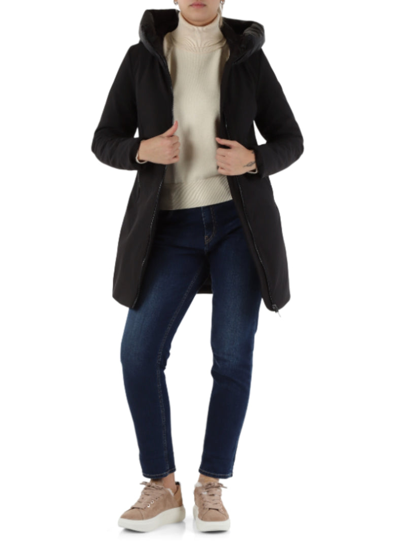 Giubbino Lungo con Cappuccio in Softshell Nero Mire 3.0 Nero