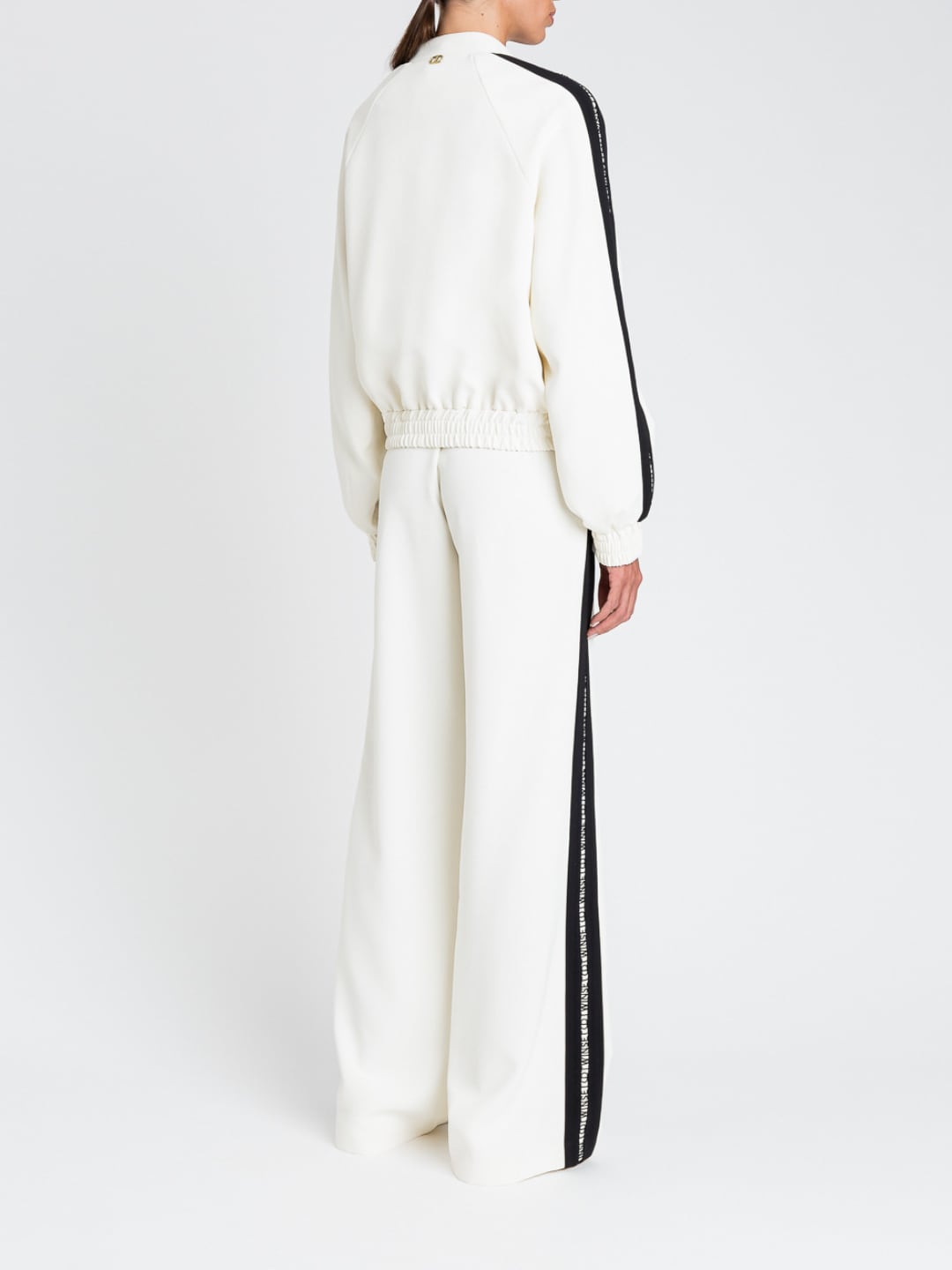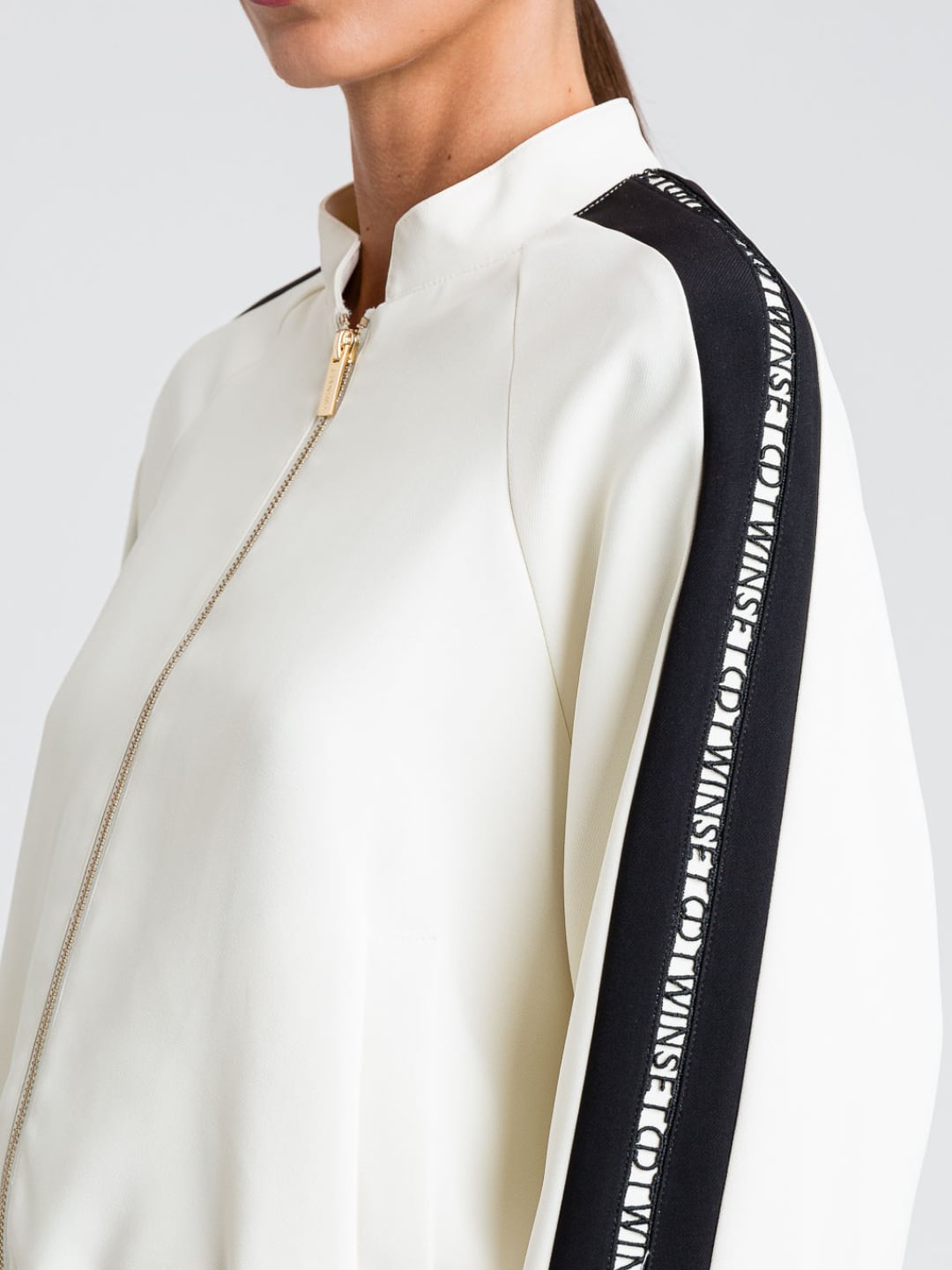 Bomber in tessuto tecnico con tape logo a contrasto colore, collo alla coreana, maniche lunghe con polsini elasticizzati, fascia elasticizzata in fondo e chiusura con zip. Da abbinare con i pantaloni della stessa linea per una tuta moderna. DETTAGLI PRODOTTO:
