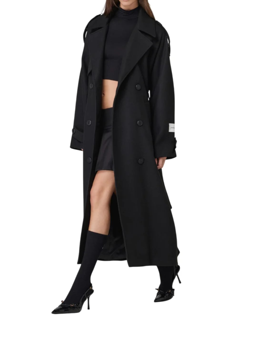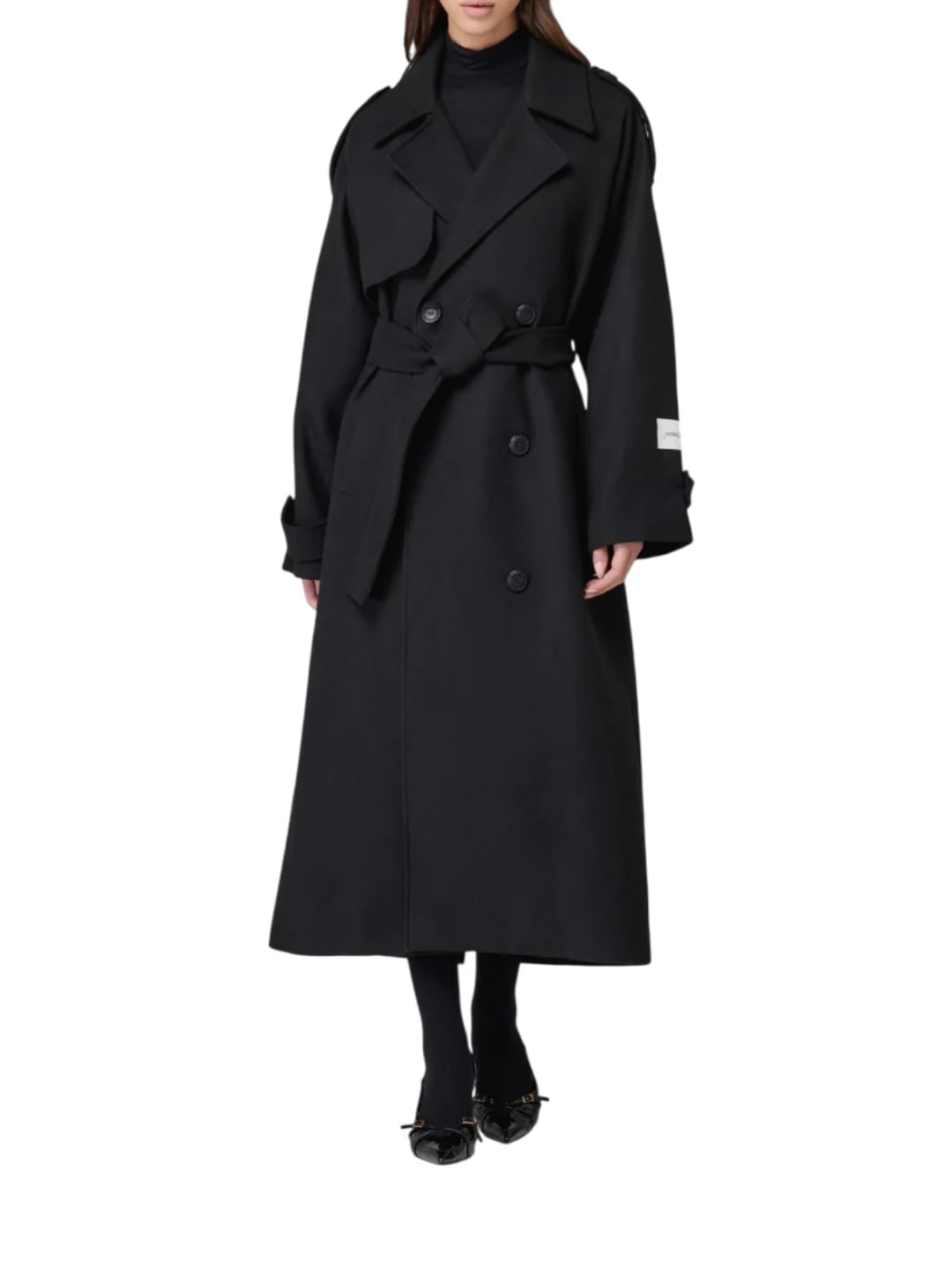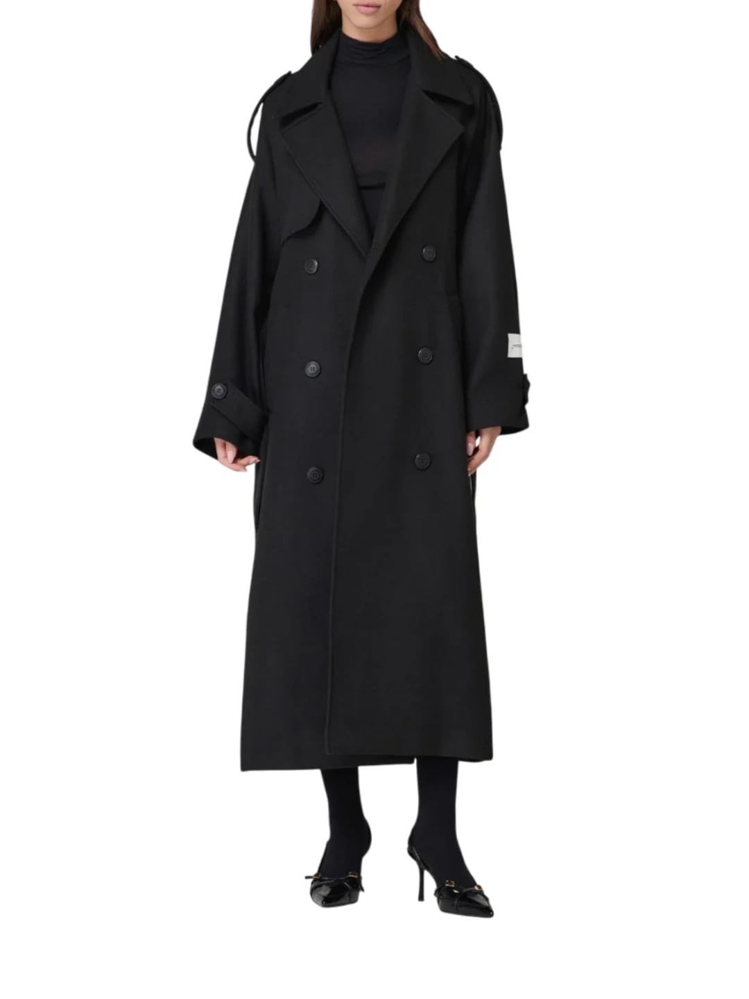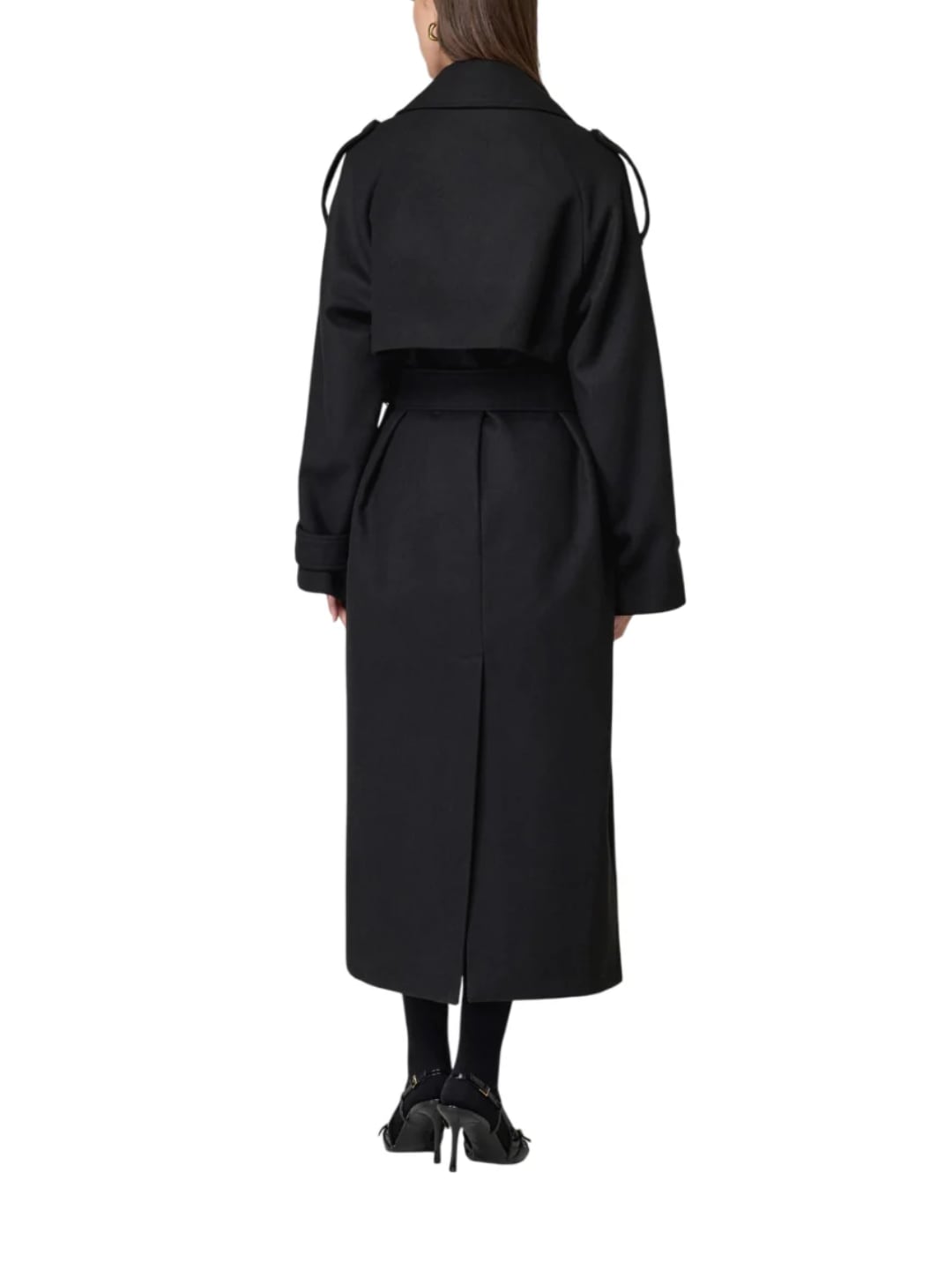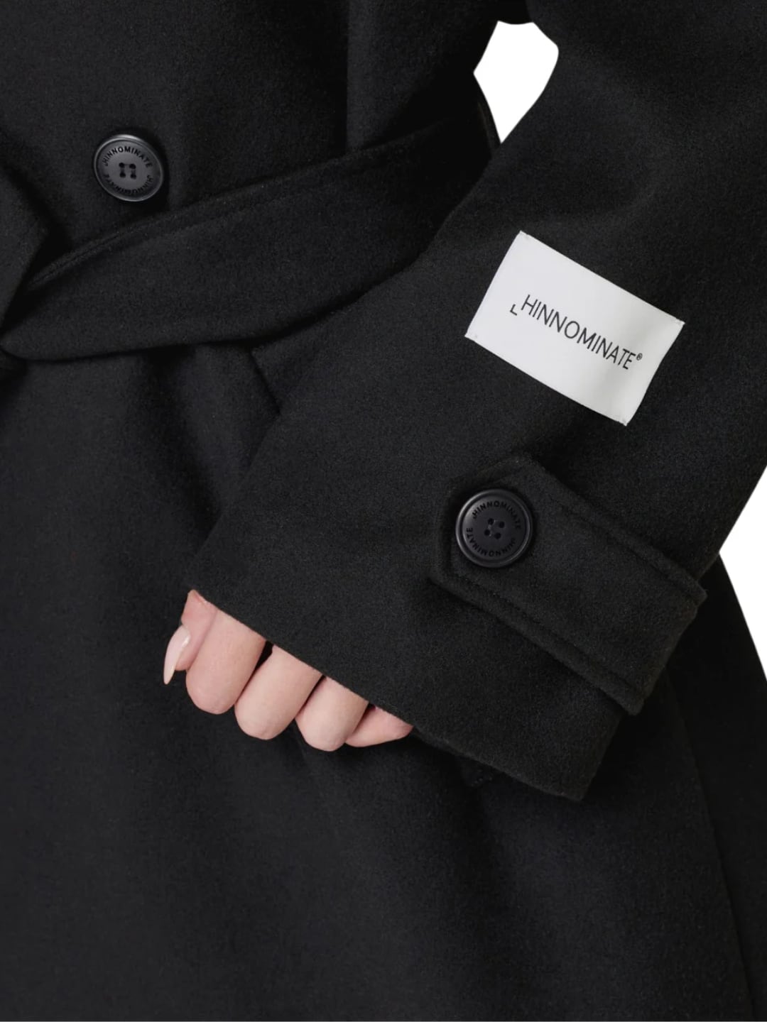 Hinnominate Cappotto Over in Panno con Cintura Nero