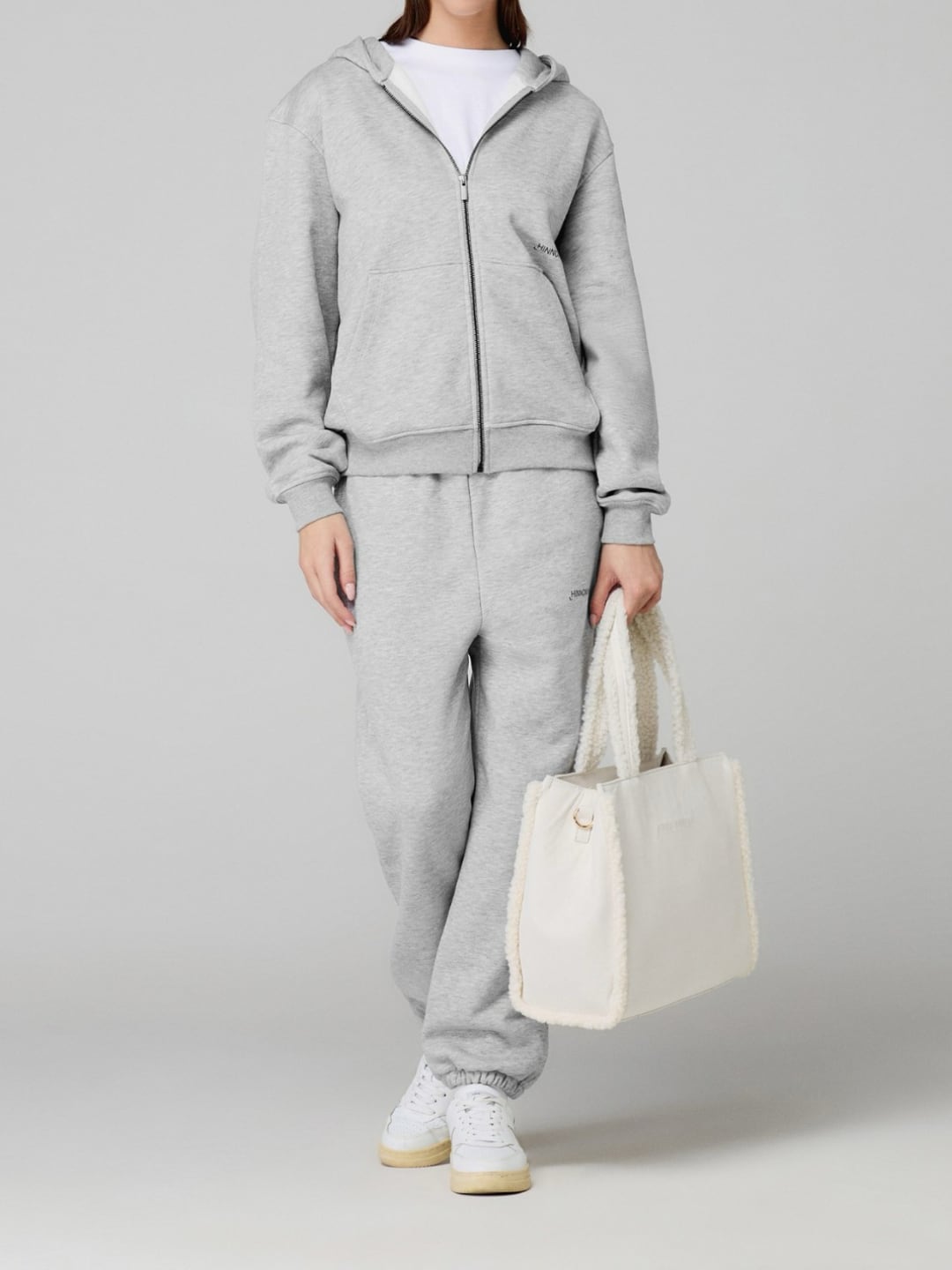 Hinnominate Felpa con Cappuccio Basica Full Zip con Marsupio Grigio Melange