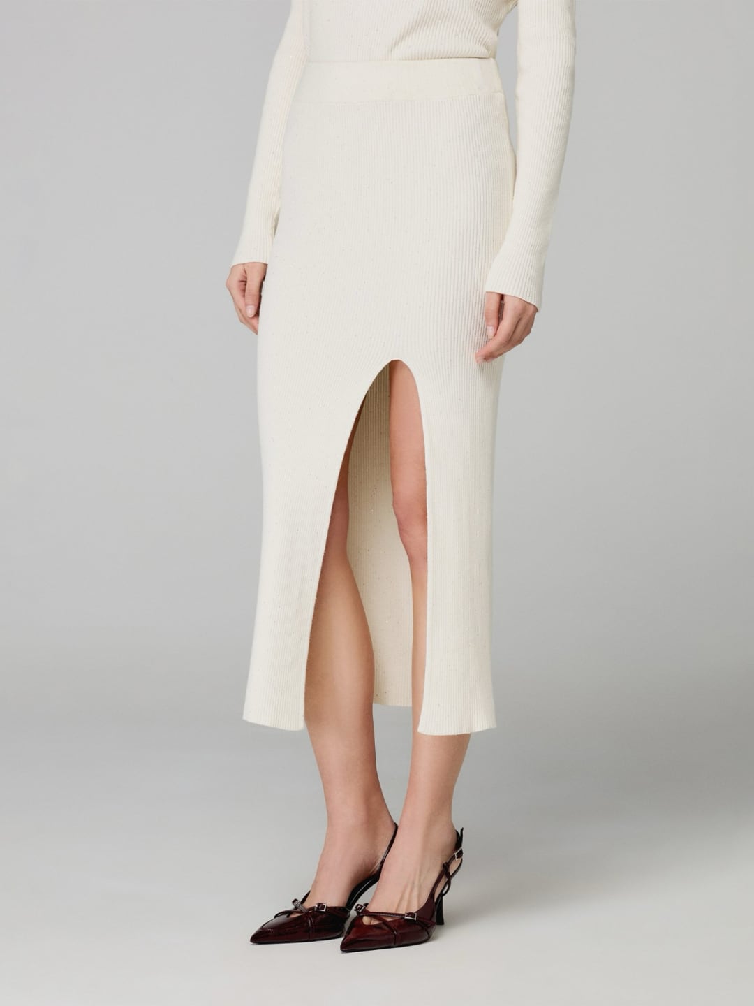 Gonna Midi Con Ampio Spacco In Costina Con Paillettes.