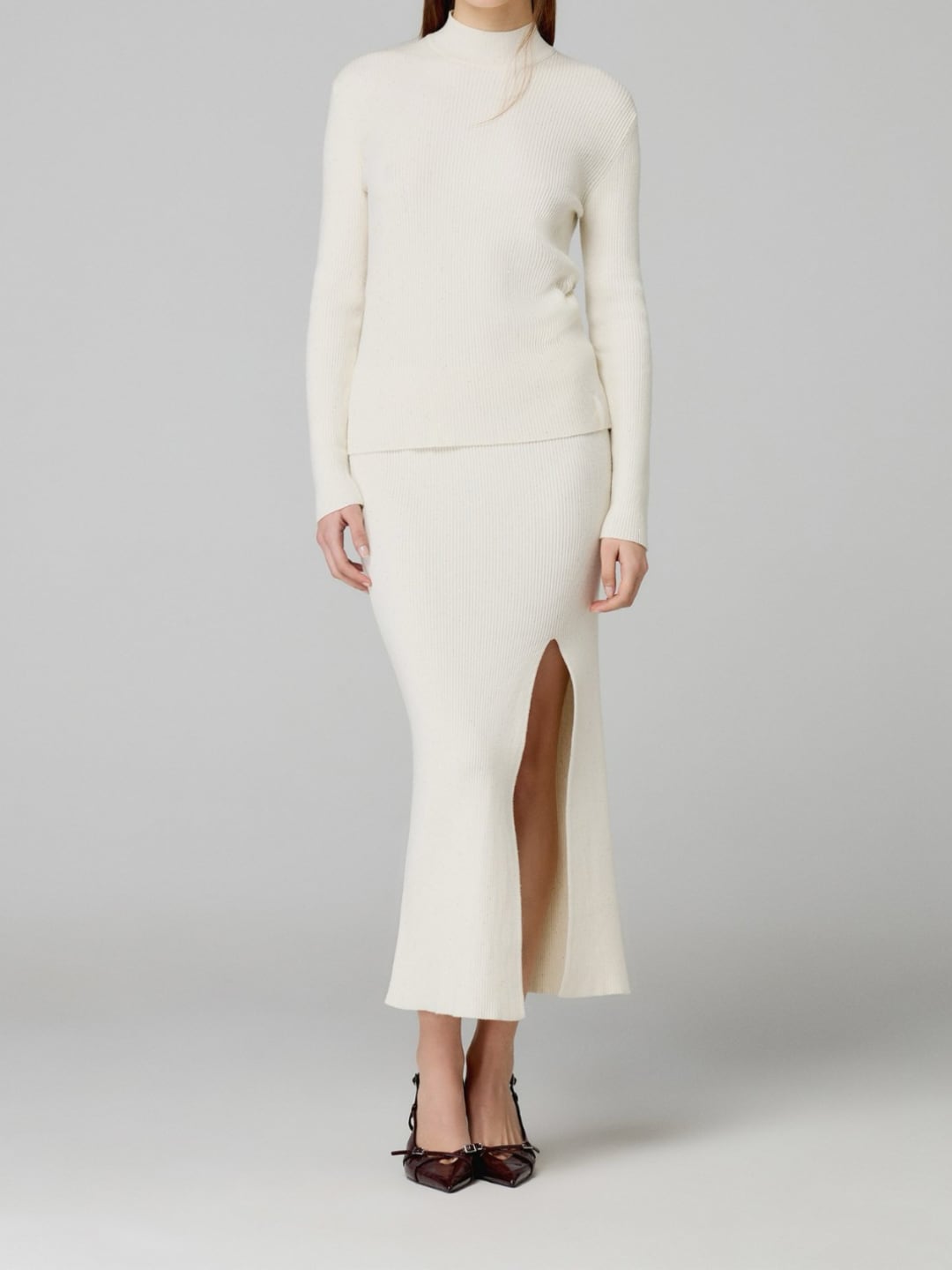Hinnominate Gonna Midi Con Ampio Spacco In Costina Con Paillettes Burro