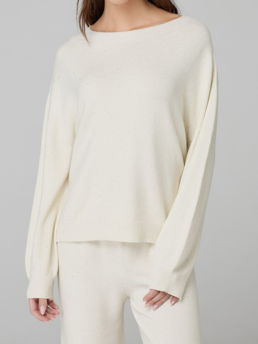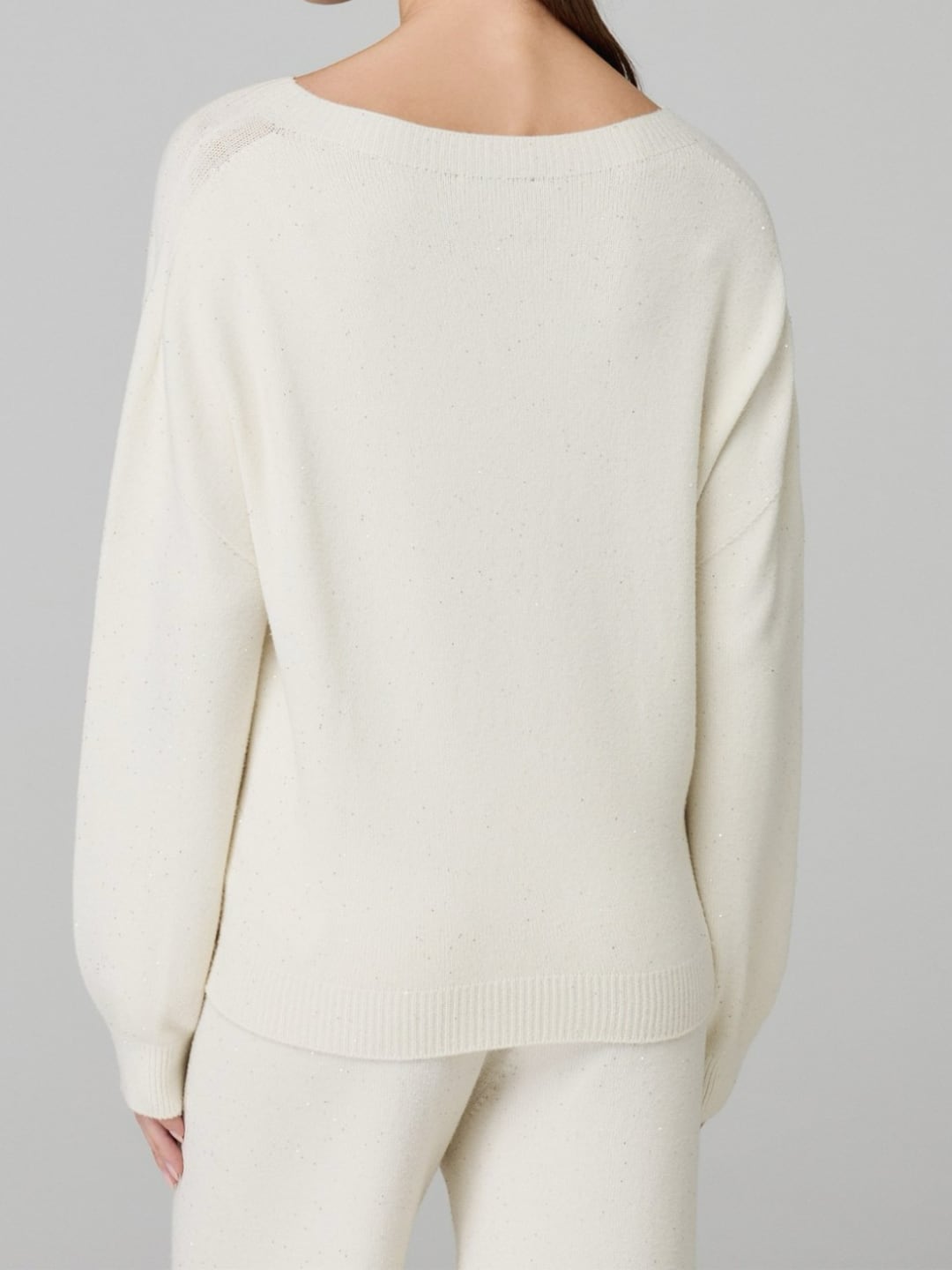 Hinnominate Maglia Paricollo In Maglia Con Paillettes Bianco Burro