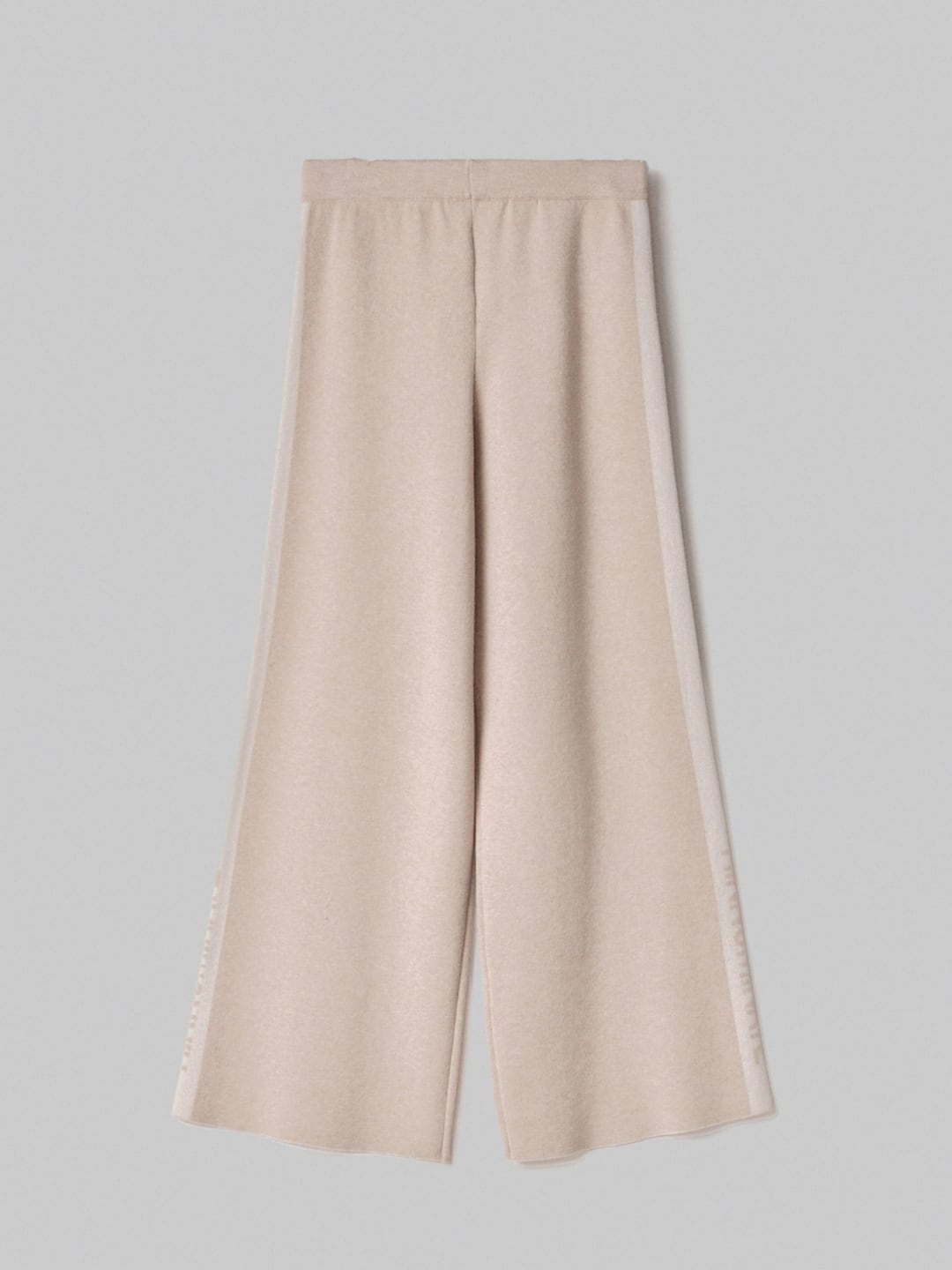Maglia Pantalone In Maglia A Palazzo Con Bande In Contrasto E Logo In Punto Rovescio.