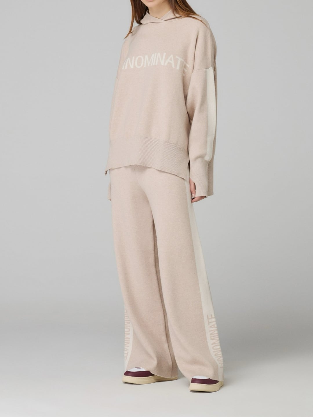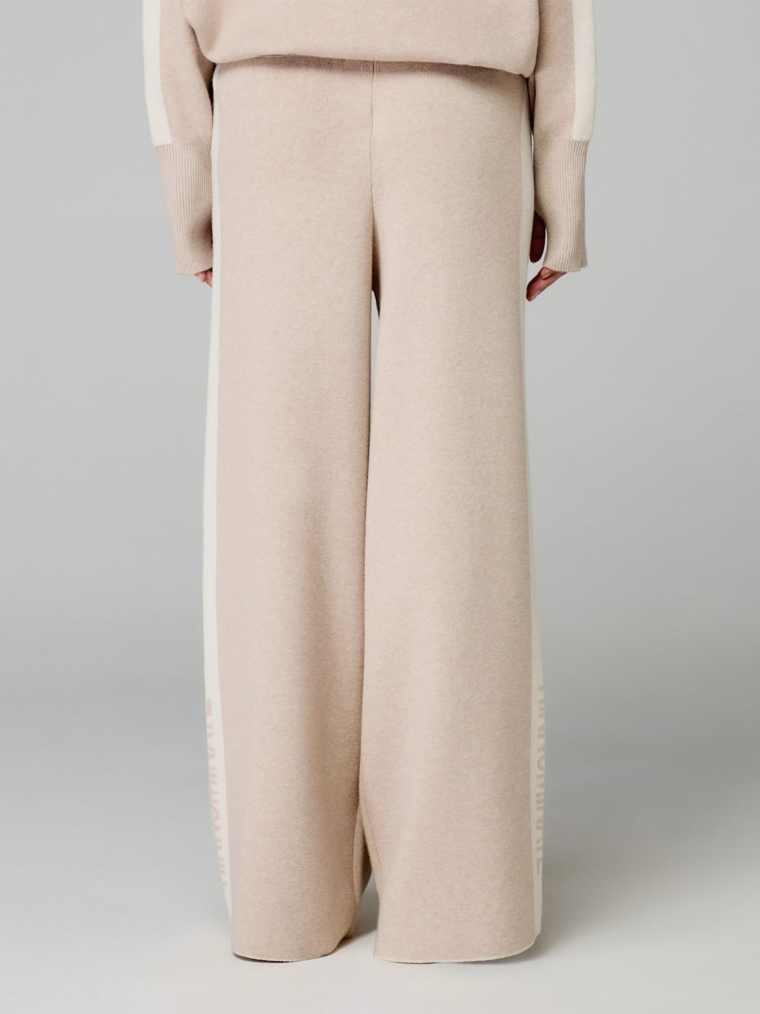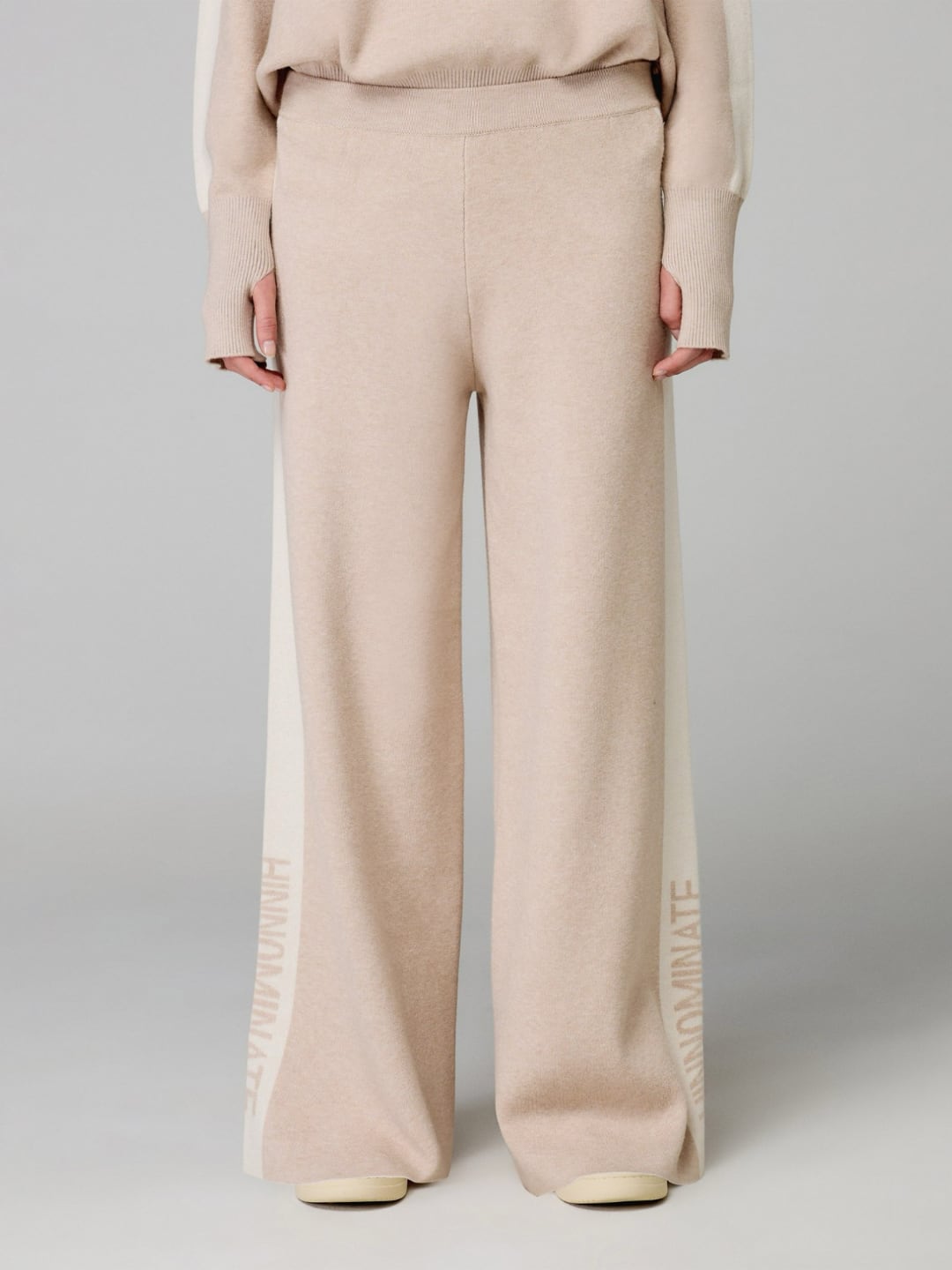 Hinnominate Pantalone In Maglia A Palazzo Con Bande In Contrasto E Logo In Punto Rovescio Beige Sand