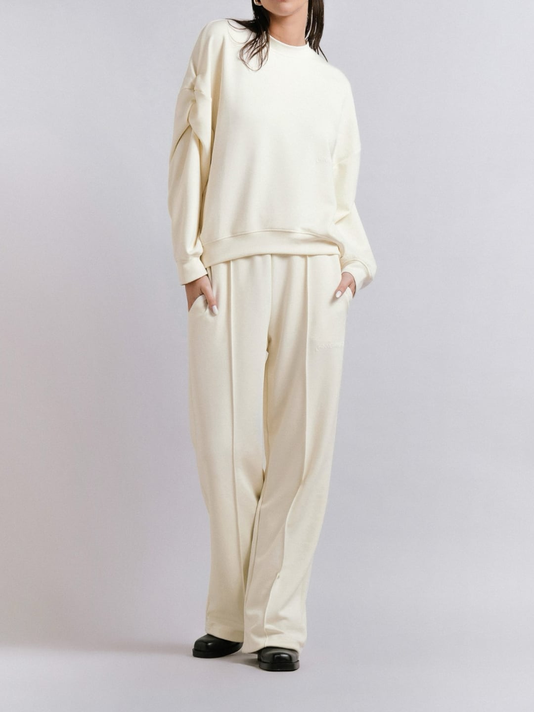 Hinnominate Pantalone In Modal Con Nervature e Coulisse al Fondo Off White