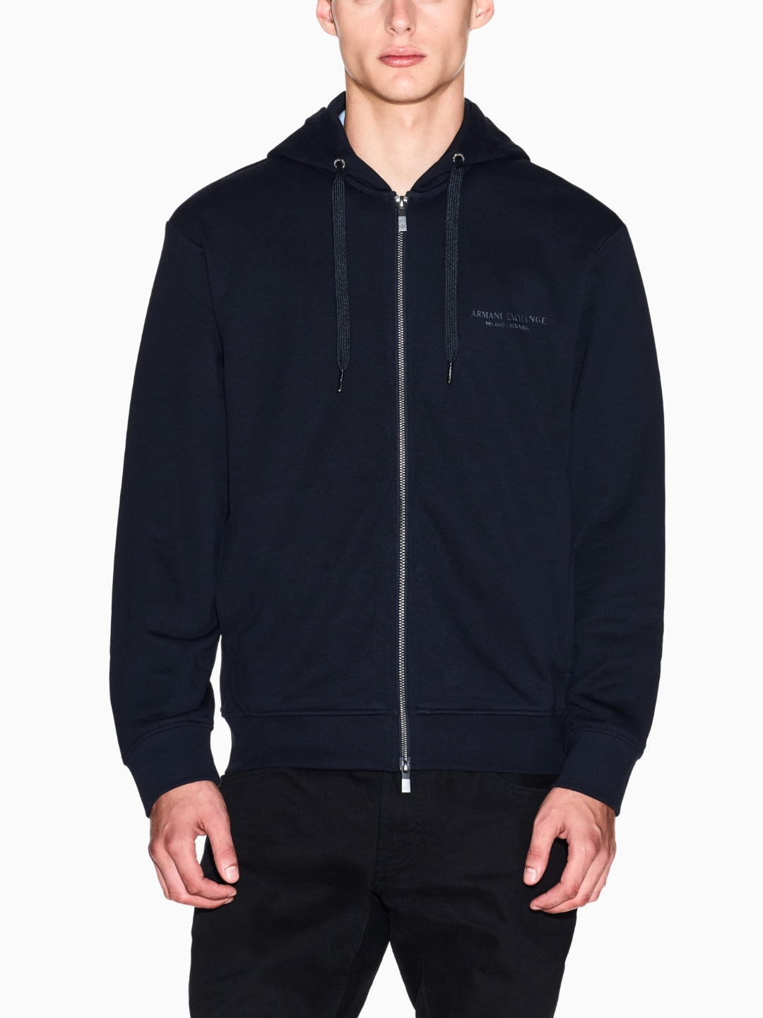 Armani Exchange Felpa Uomo Basic con Zip e Cappuccio Blu Navy