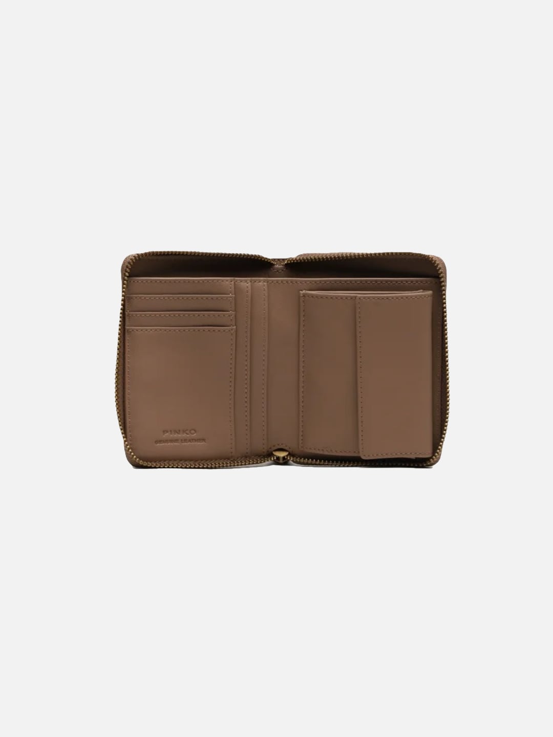 Pinko Portafoglio quadrato zip-around in pelle Biscotto Zenzero Antique Gold