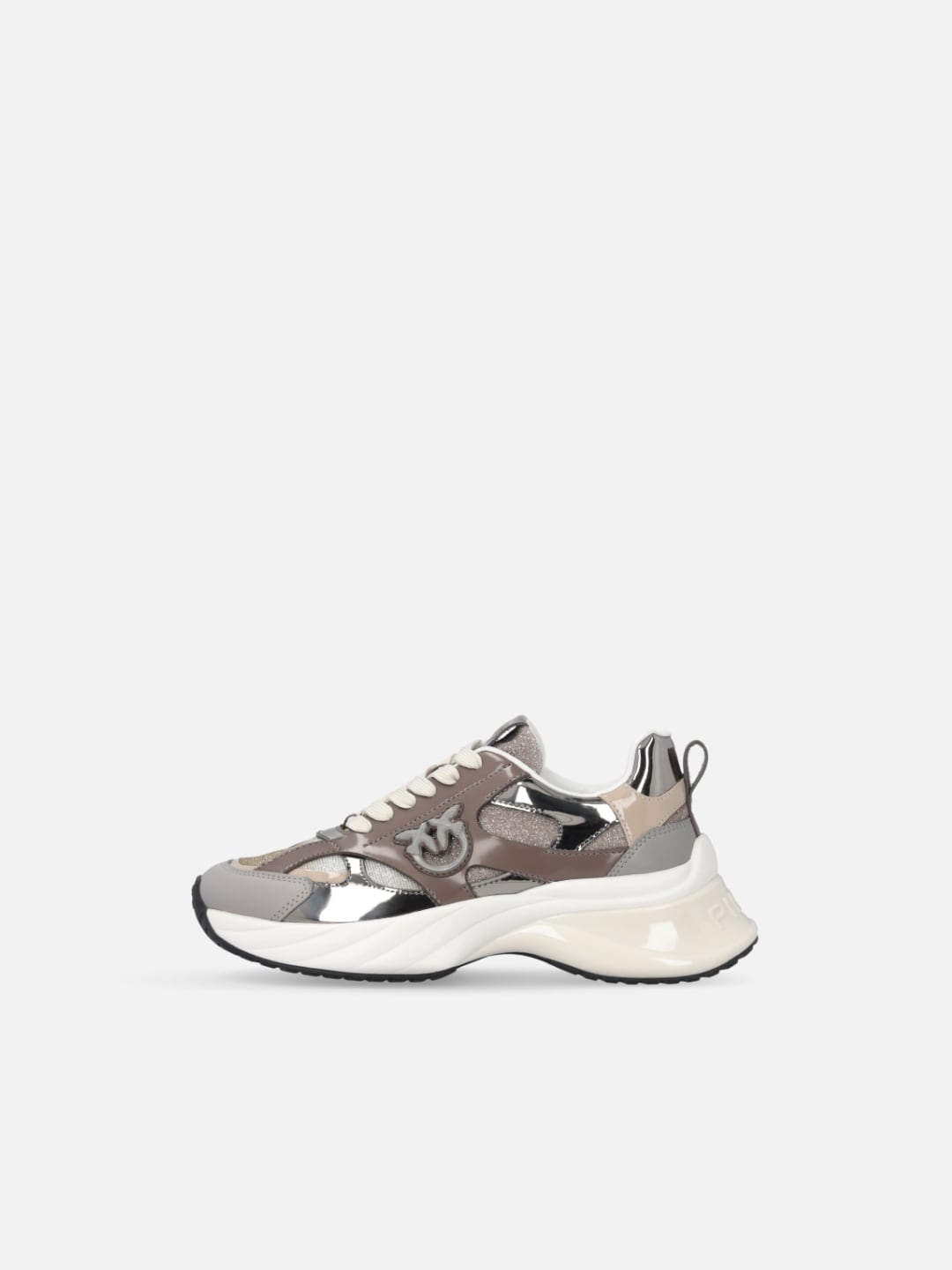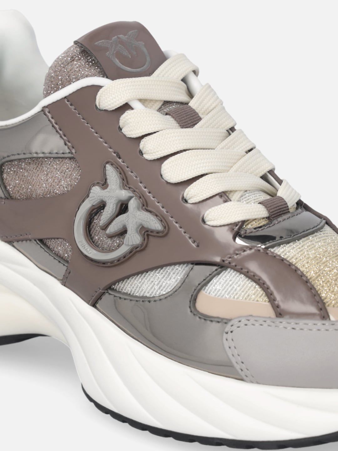 Scarpa sportiva con lacci e suola alta 7 cm, realizzata in un raffinato mix di pellami, mesh glitterati, dettagli in gomma e specchiati. La tomaia è cosparsa di inserti a contrasto che arricchiscono il modello con l'eleganza che da sempre contraddistingue il brand. L'immancabile logo Love Birds è incorporato a lato della tomaia, e viene ripreso anche sulla linguetta. Queste sneakers sono destinate a diventare un caposaldo dei tuoi look casual da giorno e non solo, sei d'accordo?