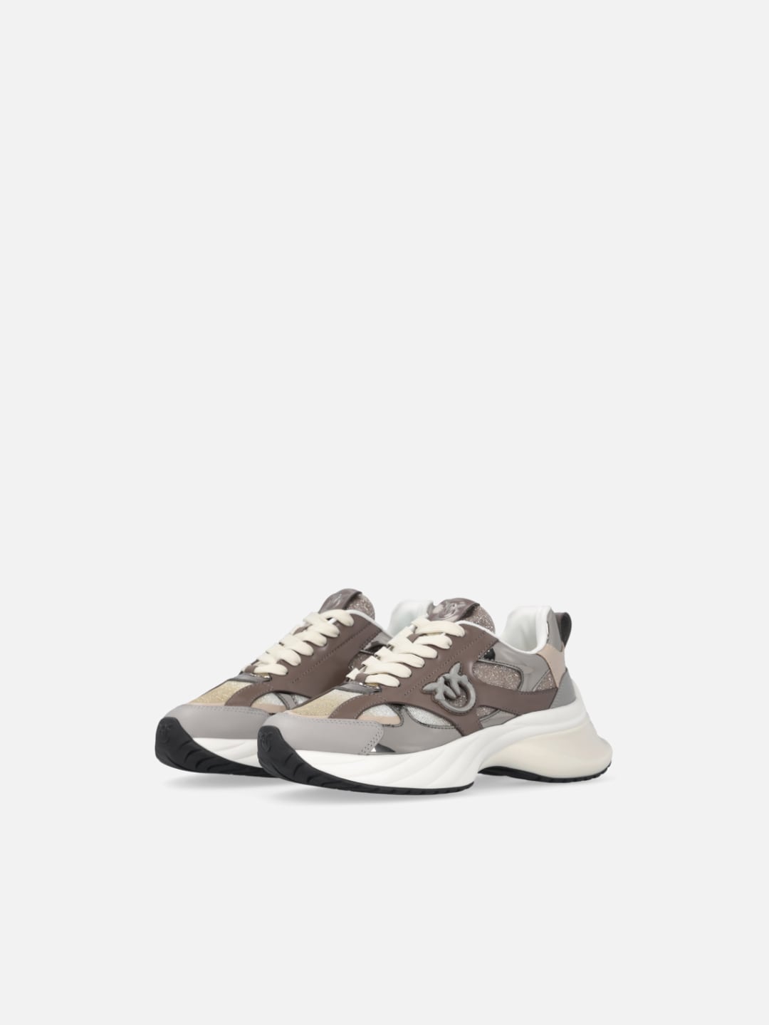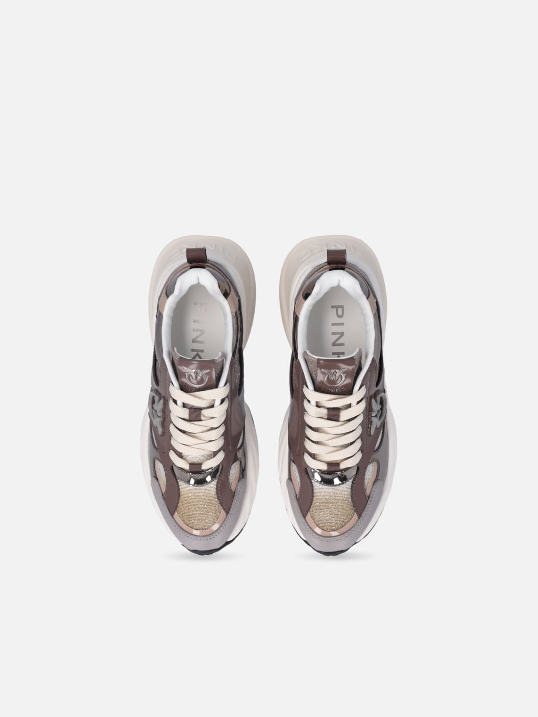 Pinko Sneakers ARIEL 15 con glitter e logo Love Birds Tabacco