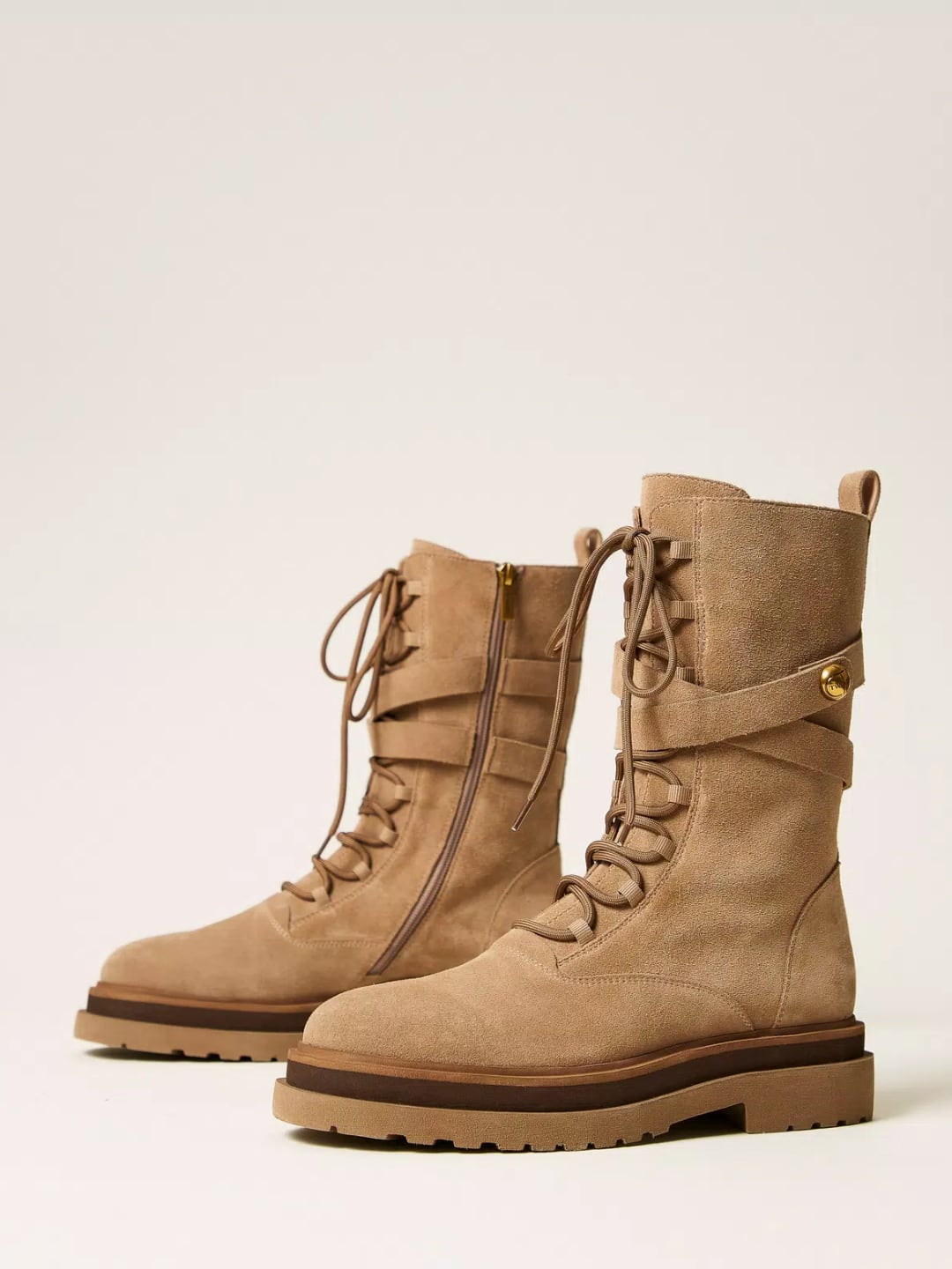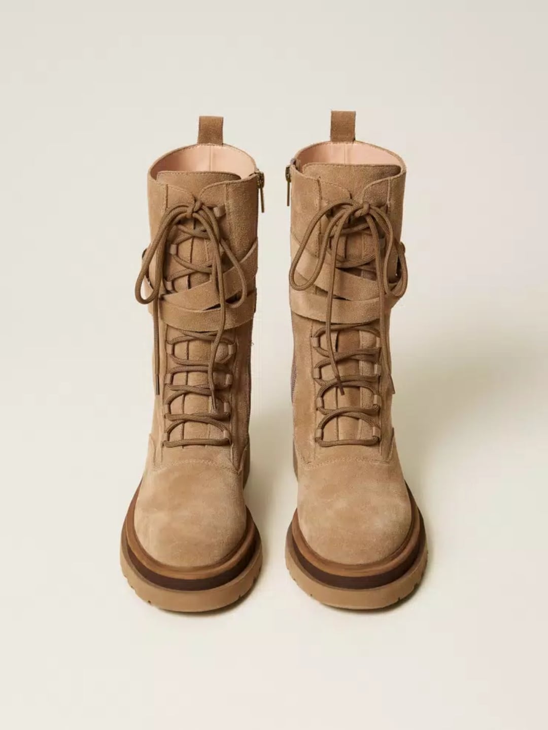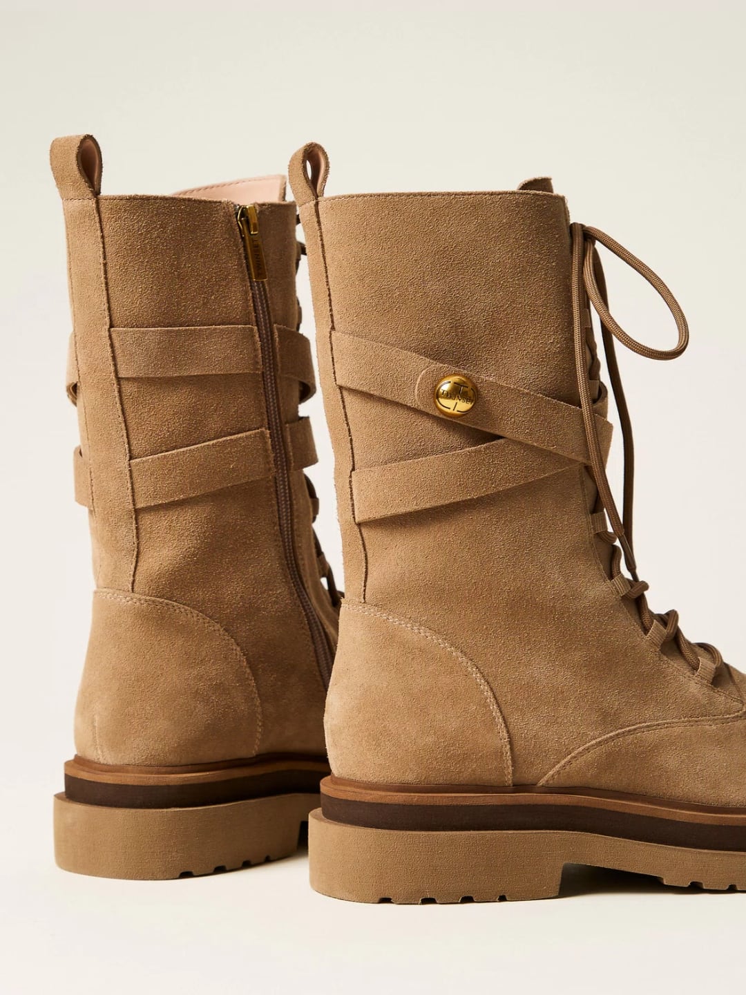 Twinset Anfibio in pelle scamosciata Alpaca Brown