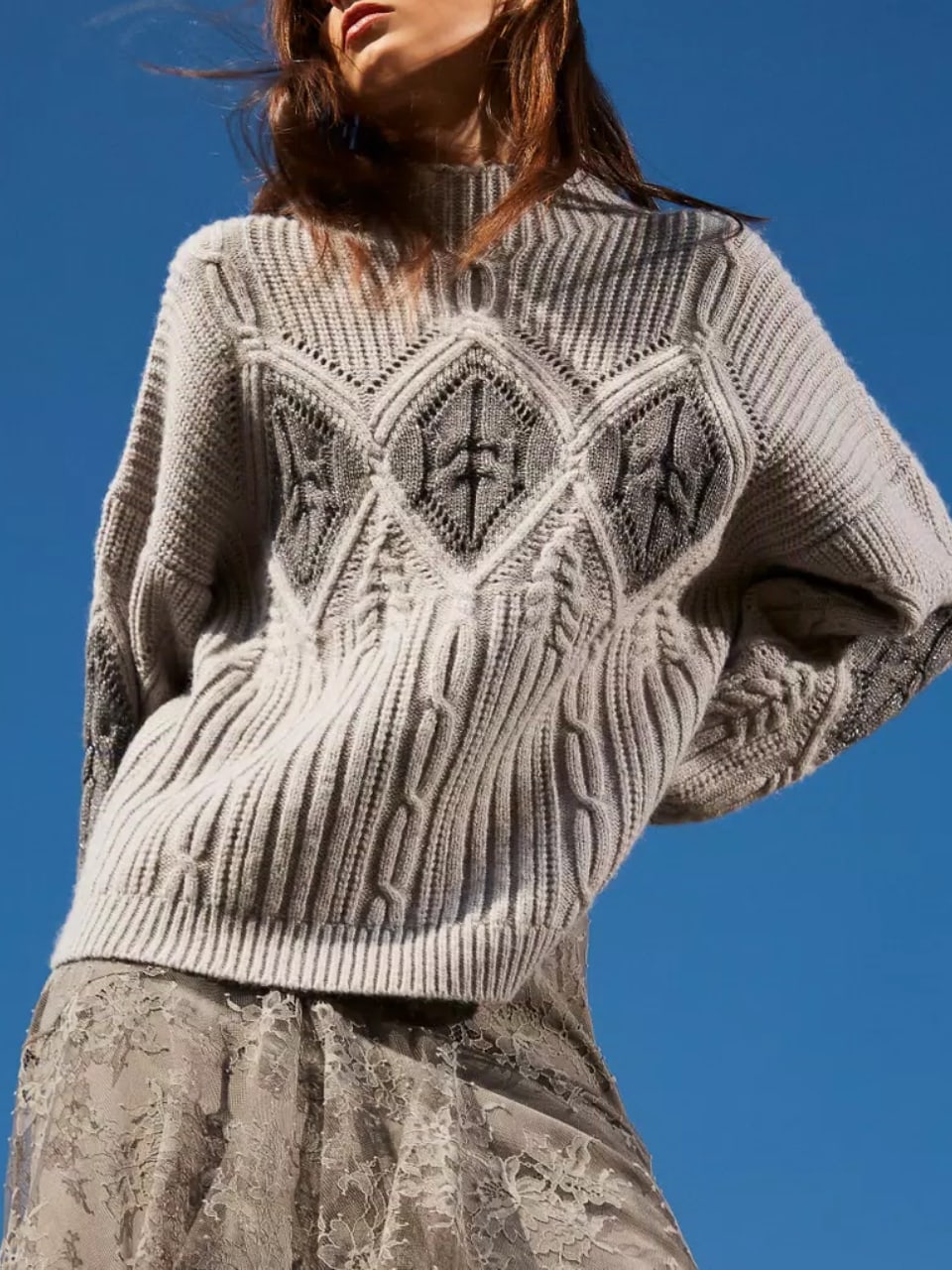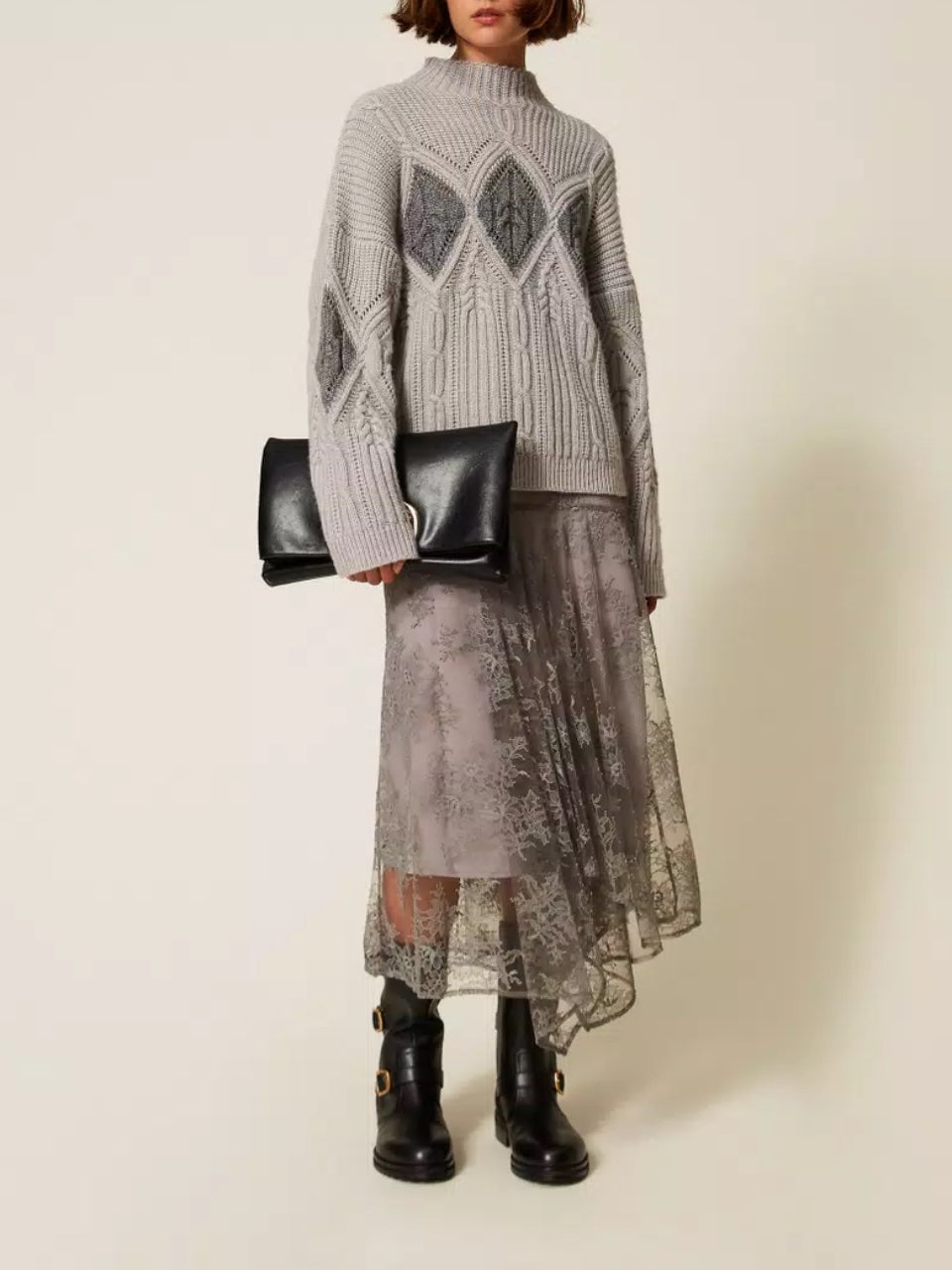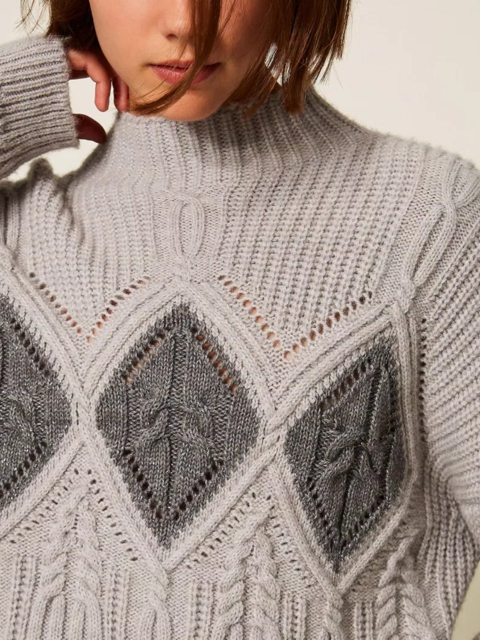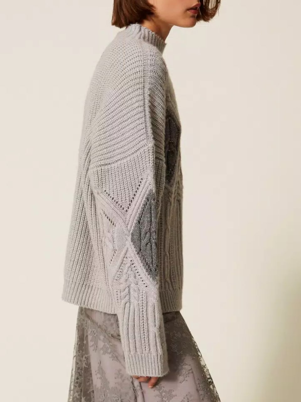 Twinset Maglione in misto Lana con intarsi Grigio