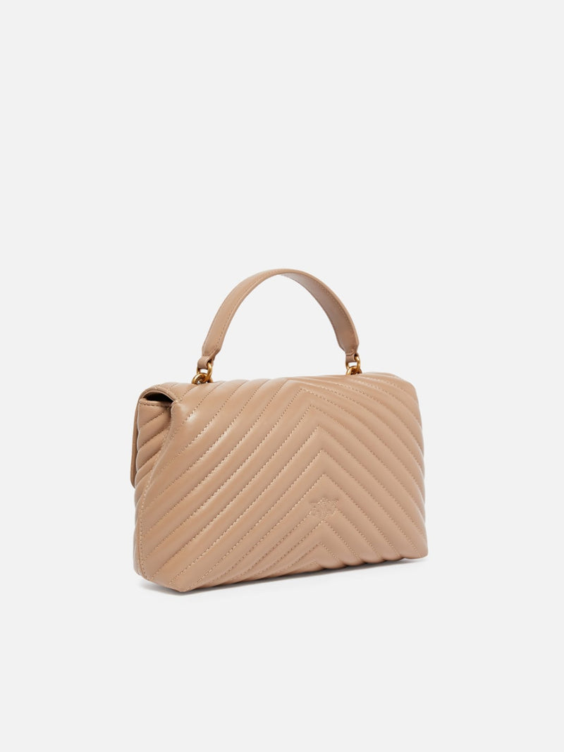 Pinko Borsa a mano e tracolla media Love Bag Puff in nappa chevron Beige Antique Gold