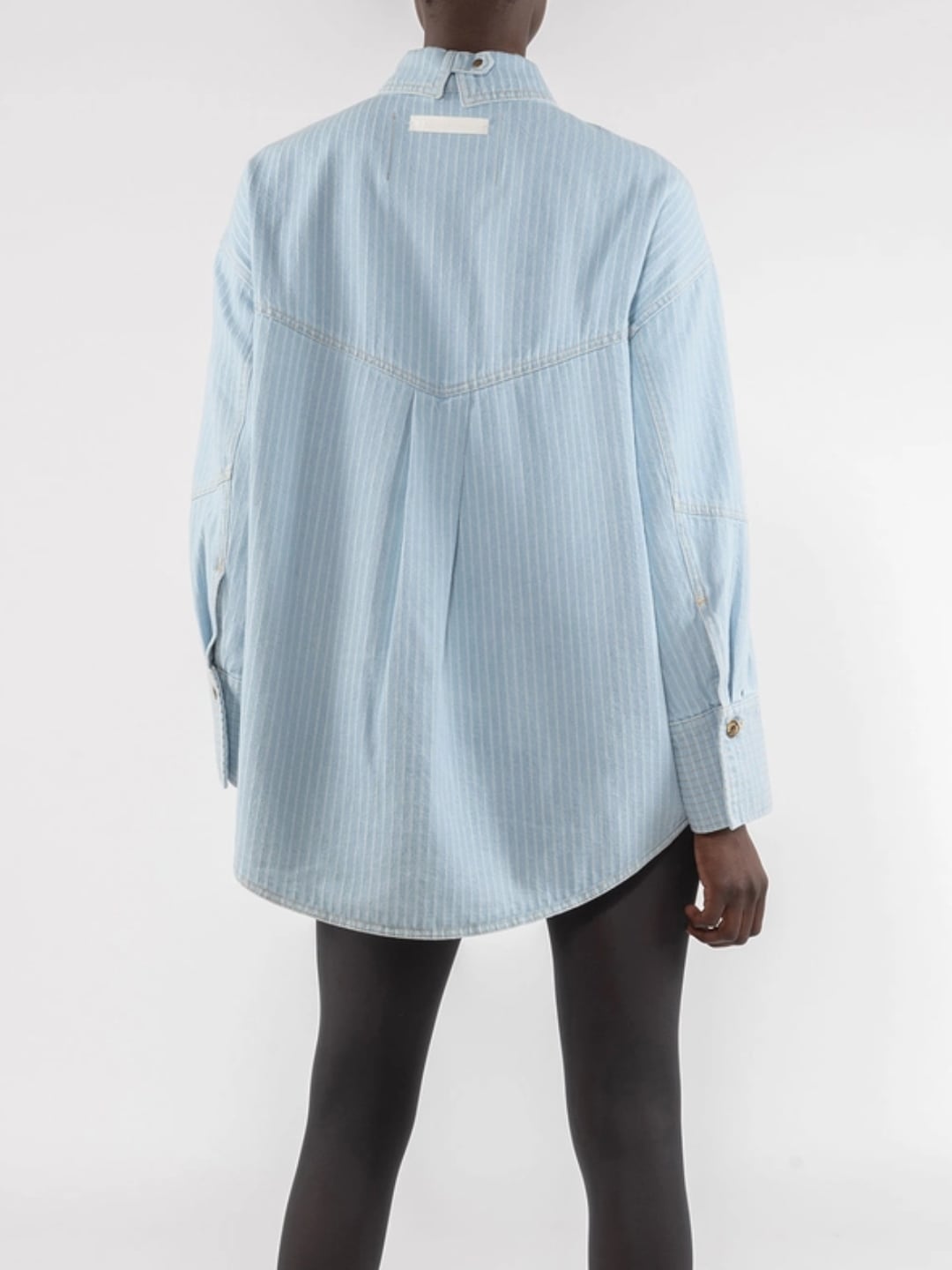 Oof Wear Camicia 9286 In Denim Gessato Jeans Bianco Denim Chiaro