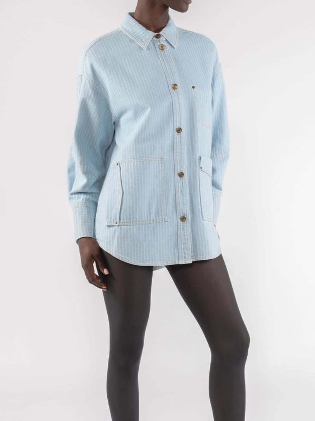 - Materiale: 100% Cotone / Denim gessato 100% Cotone.
