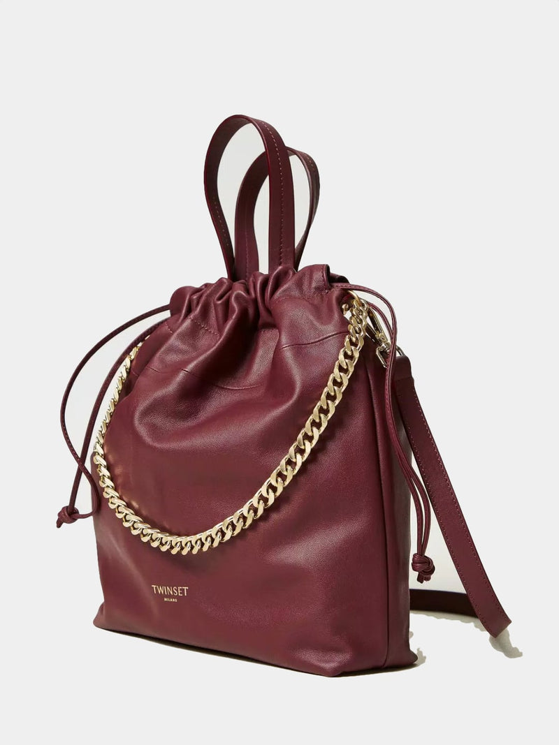 Twinset Borsa shopper media in pelle con coulisse Bordeau