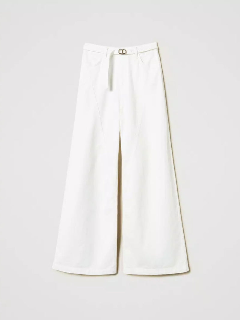Twinset Pantaloni wide leg in white bull Bianco Neve