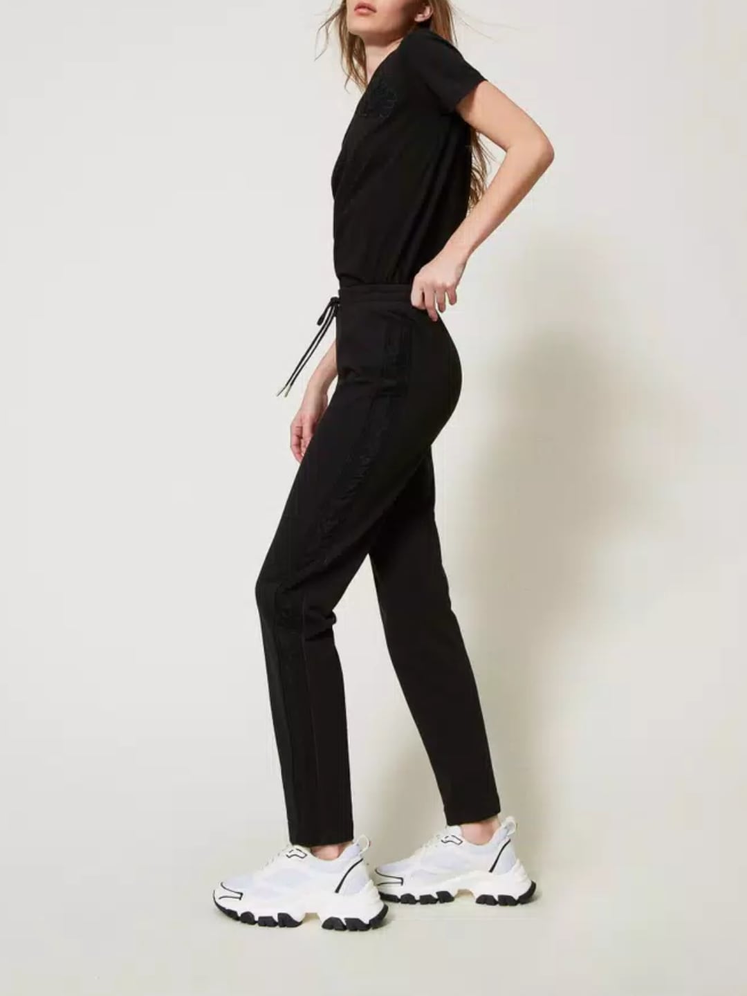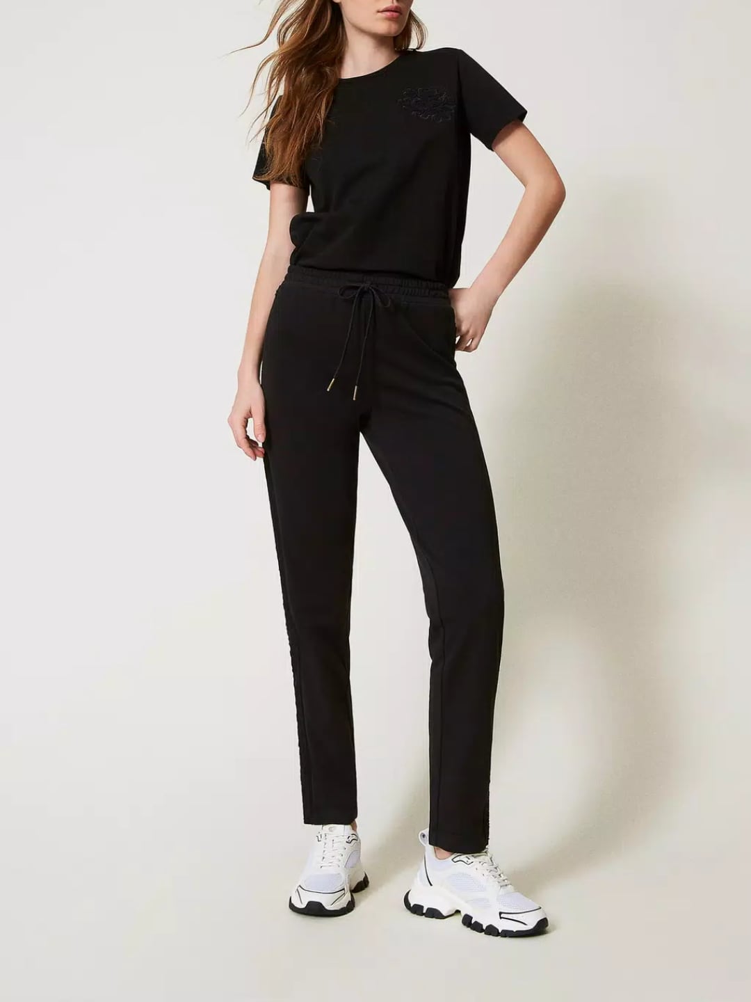 Twinset Pantaloni a Sigaretta con RIcamo Donna Nero
