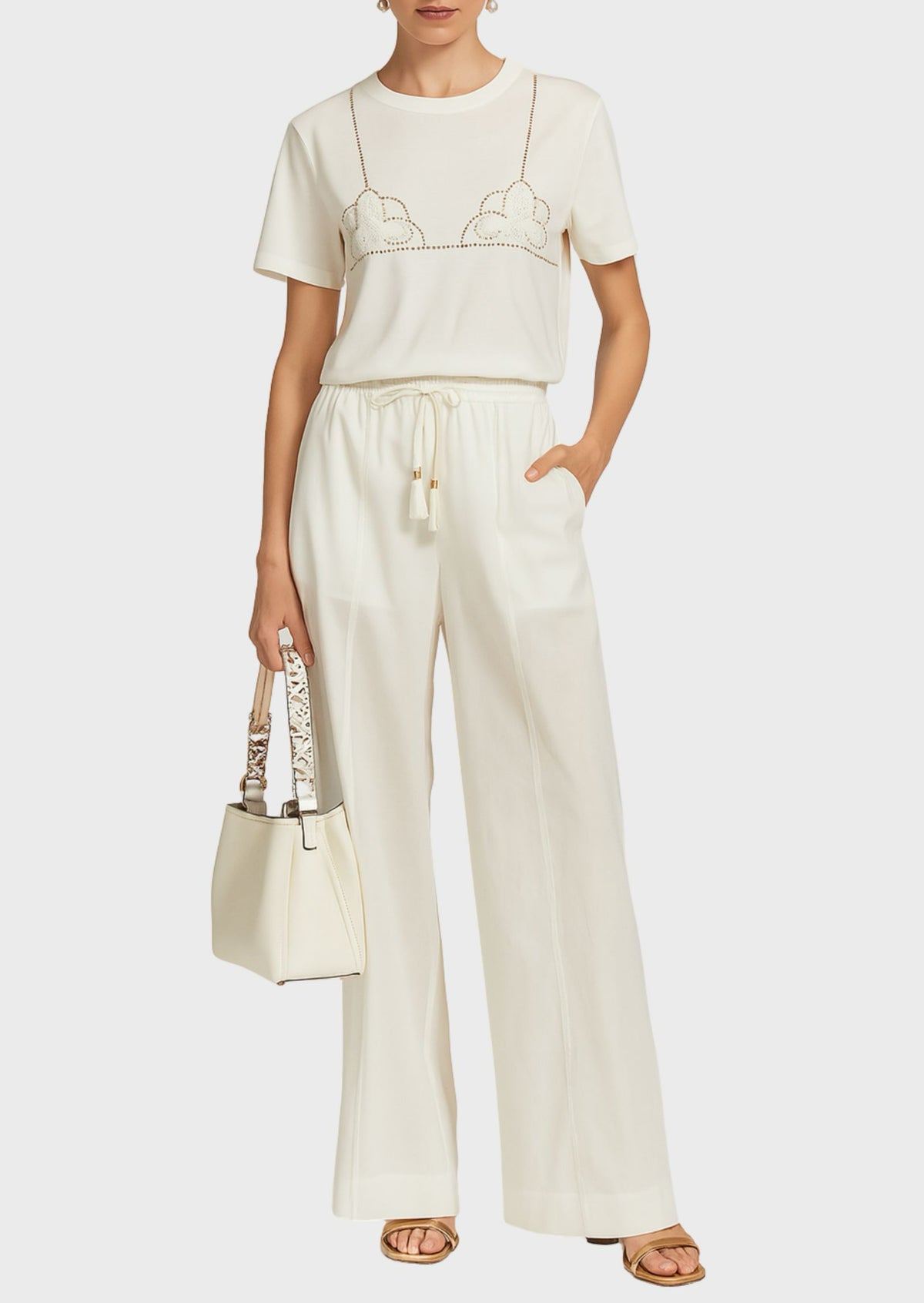 - Pantalone realizzato in mussola di cotone