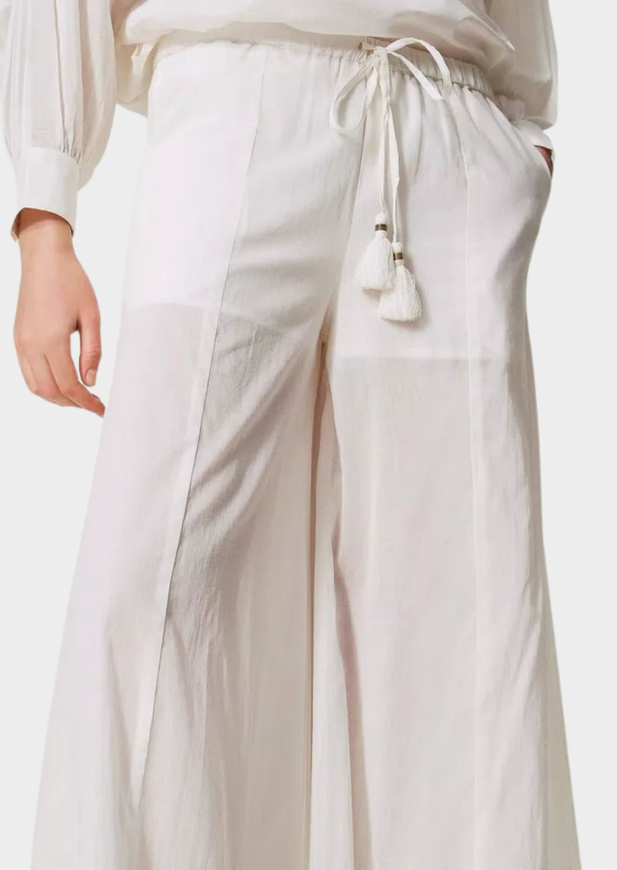 Twinset Pantalone a palazzo in mussola di cotone Bianco