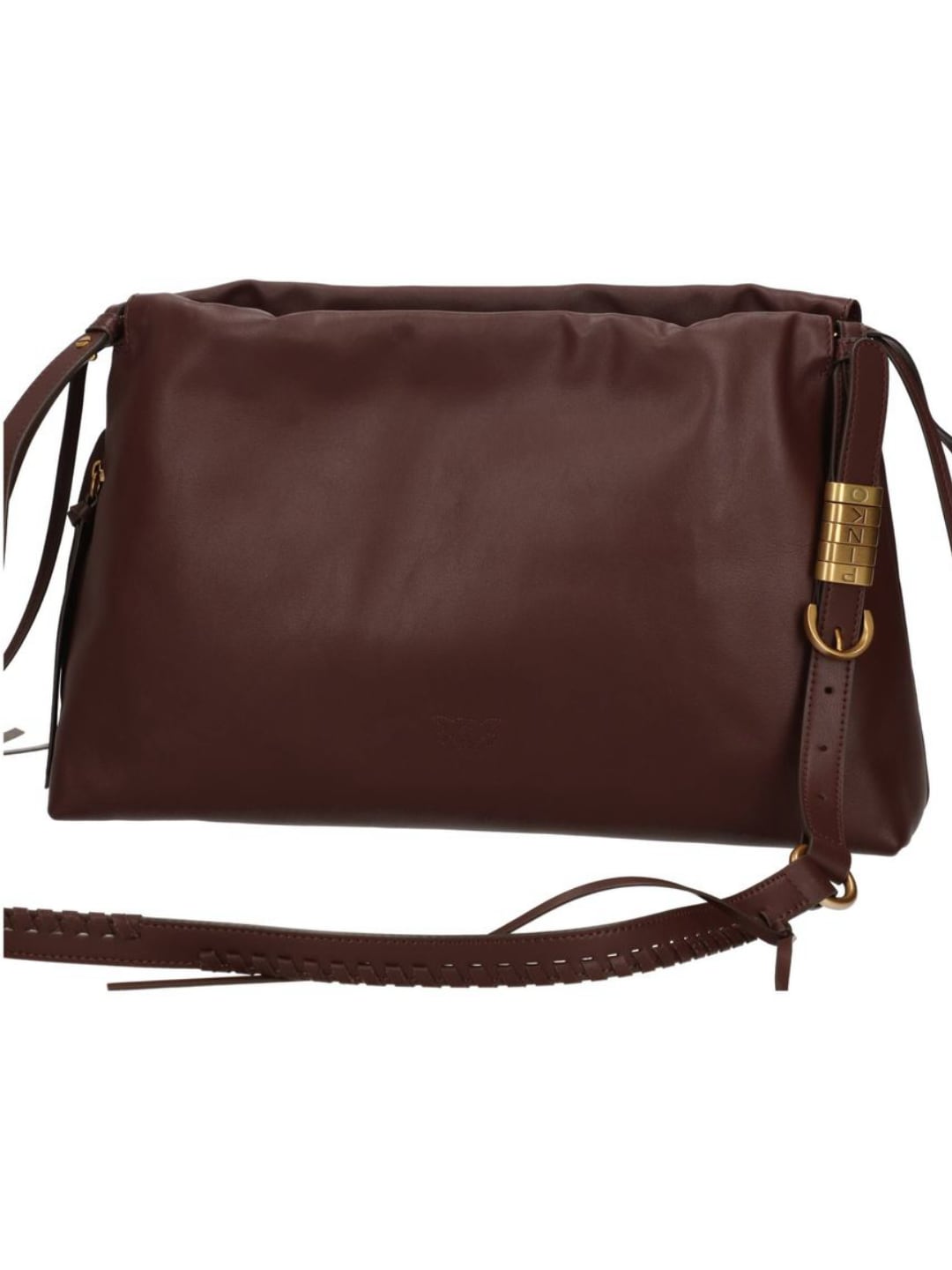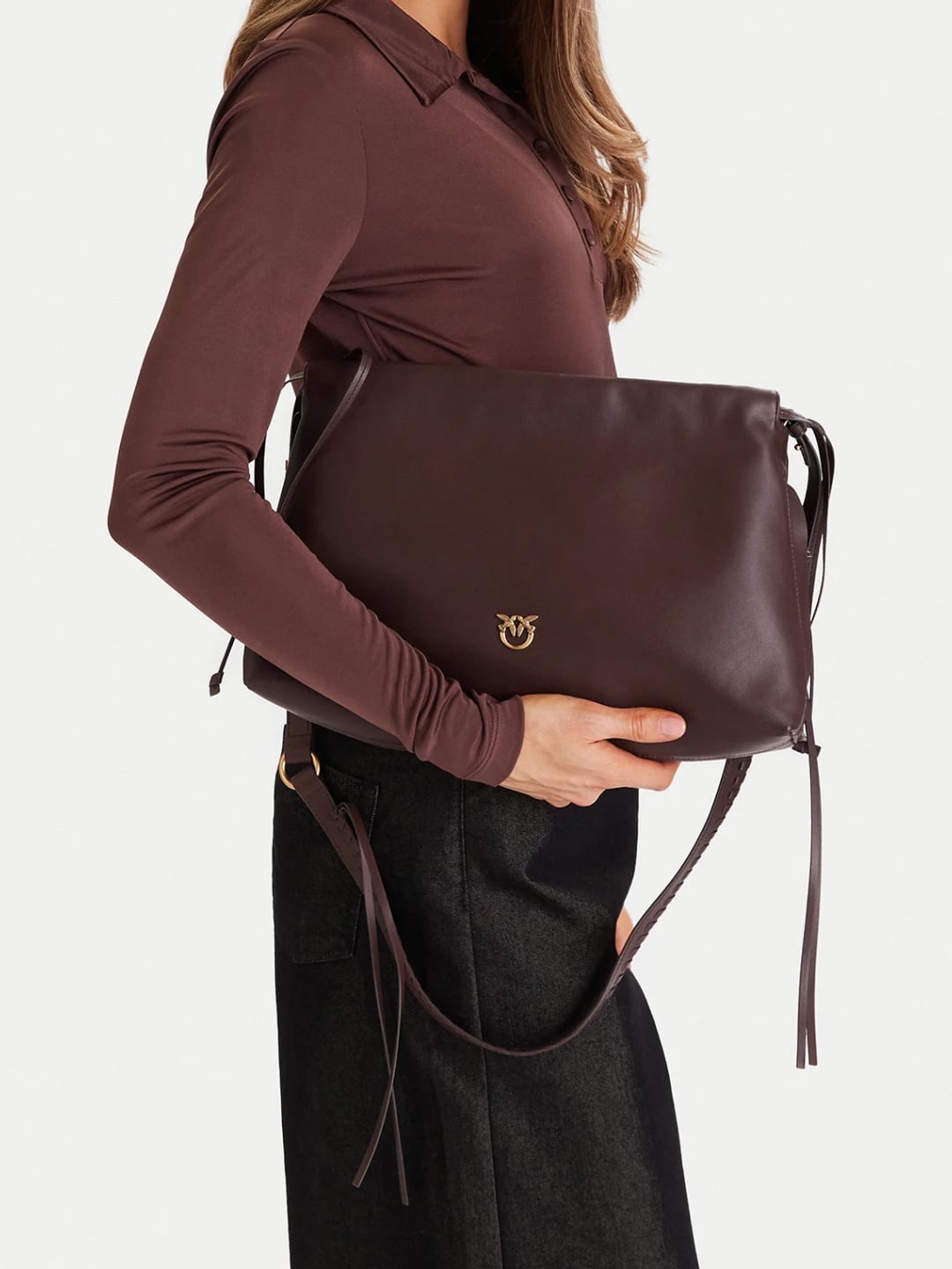 Pinko Borsa Maxi Clutch a spalla grande in pelle con logo Love Birds Bordeaux