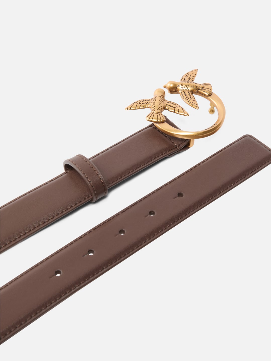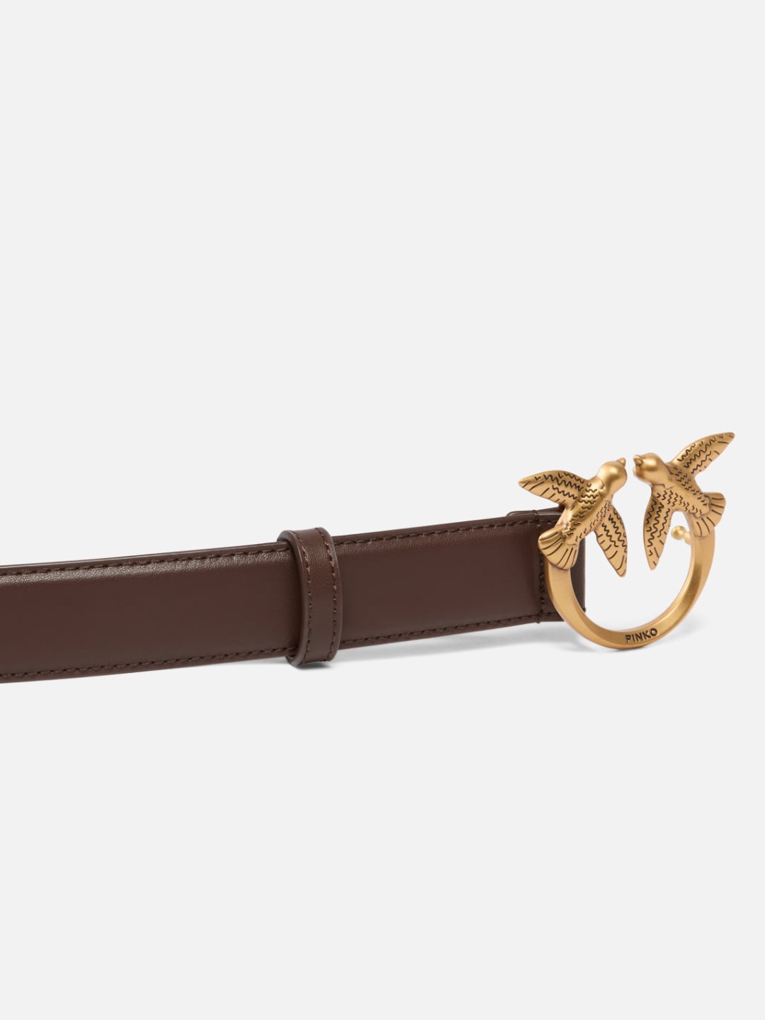 Pinko Cintura Love Birds Vitello 3cm Marrone Castano Antique Gold