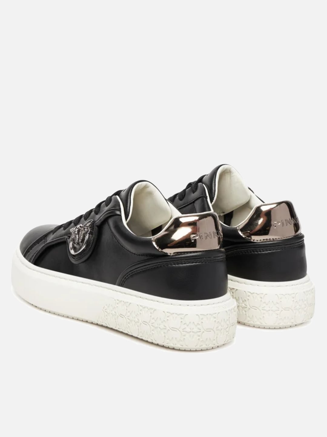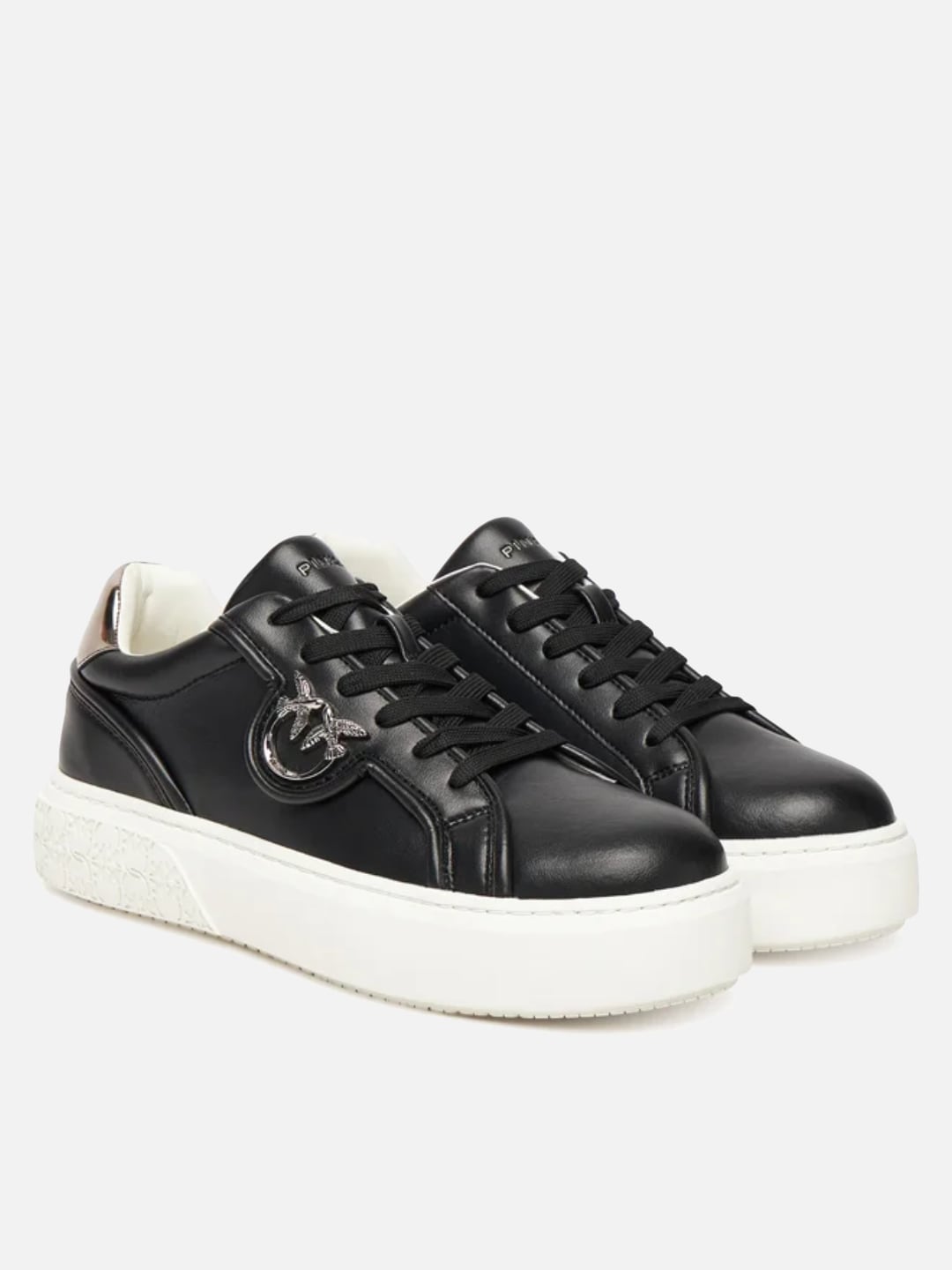 Pinko Sneakers flatform YOKO 06 con suola alta e logo in metallo Nero Old Silver