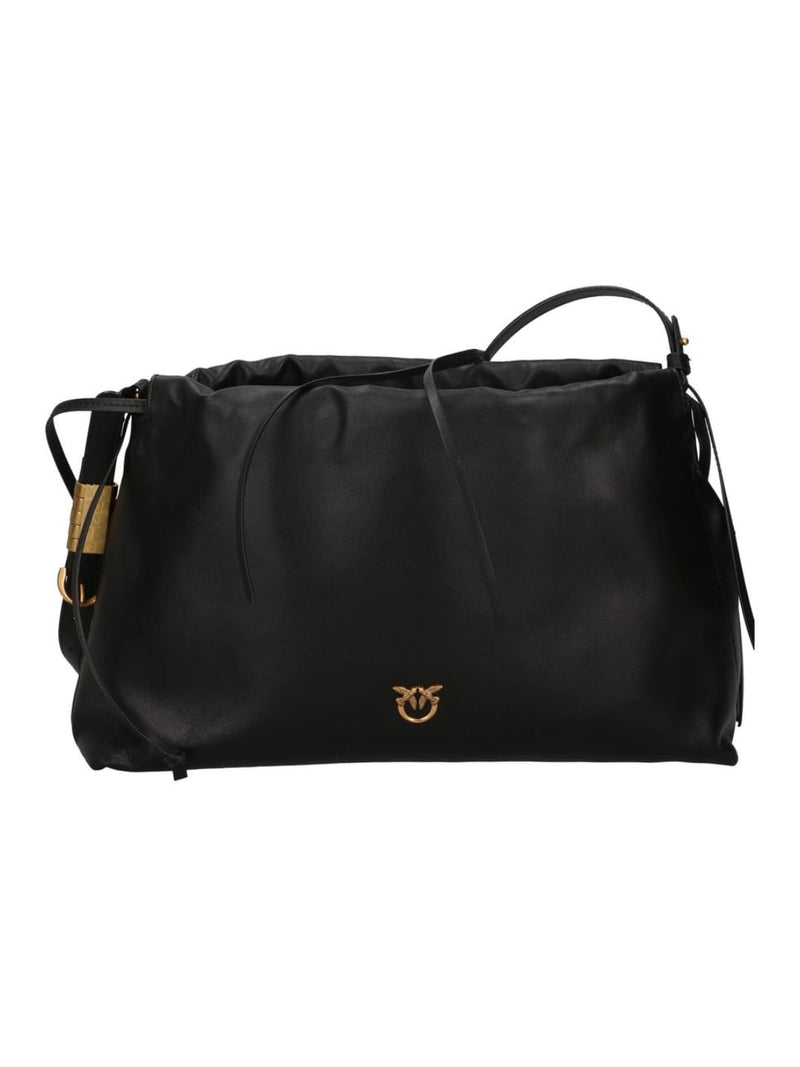 Pinko Borsa Maxi Clutch a spalla grande in pelle con logo Love Birds Nero