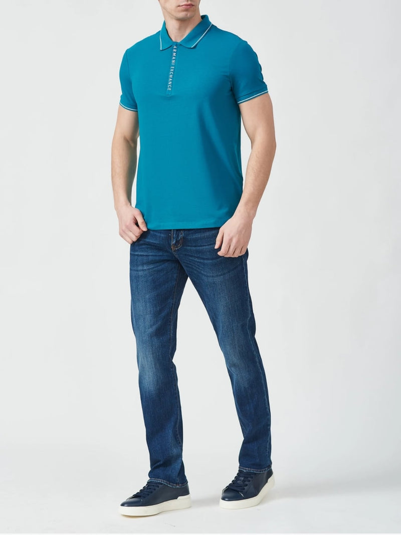 Armani Exchange Polo In Piquet Con Logo Blu Navy