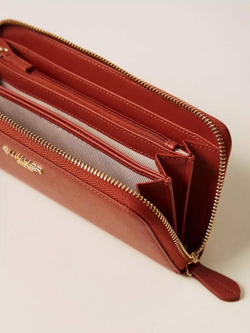 Twinset Portafoglio zip around con logo Mattone