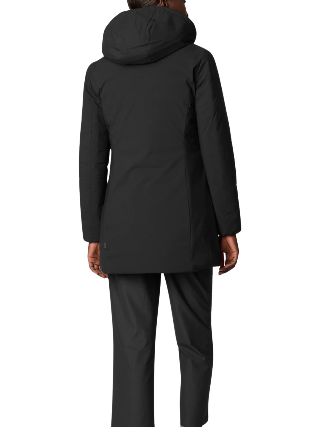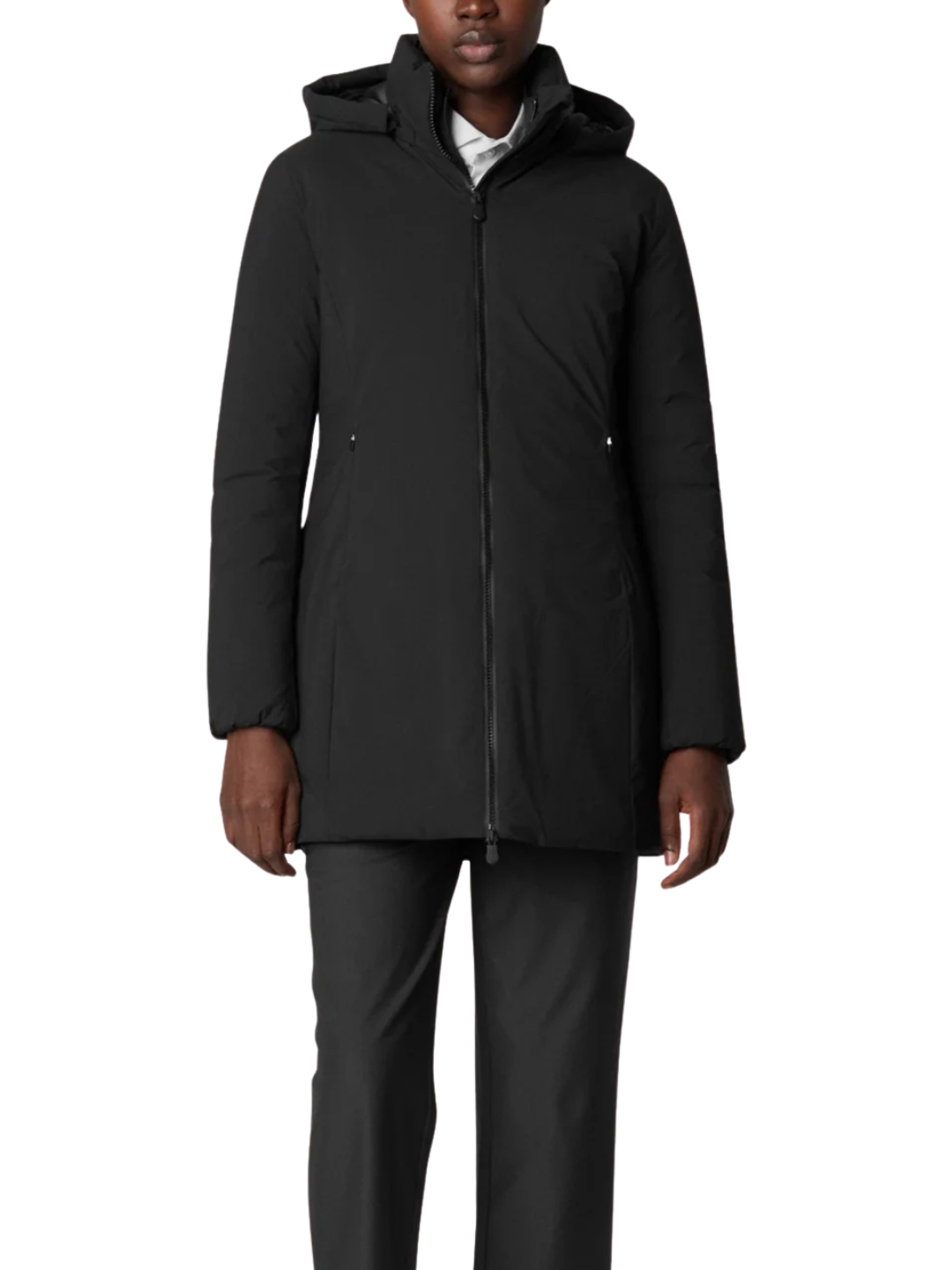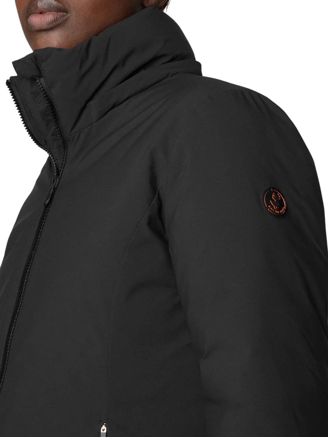 Il parka donna modello Rachel sfida la pioggia e il freddo con tessuti riciclati e imbottitura animal free in Recycled Plumtech®. Il capo ha cappuccio rimovibile e regolabile, zip centrale water-resistant e tasche zippate. Segni particolari? I tiretti personalizzati e il logo tono su tono incollato a caldo sulla manica.